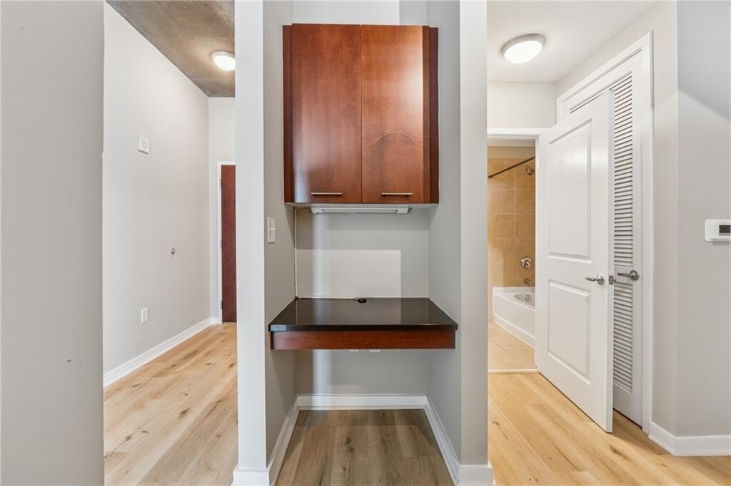 REALM Buckhead! Condo living with the perks of a studio apartment and the privacy of a true one bedroom floorplan. Hardwood flooring throughout, Stainless Steel Appliances, perfect for entertaining! Enjoy stunning views of the Downtown Atlanta Skyline through your beautiful Floor-To-Ceiling windows. Stacked Washer and Dryer hidden in bathroom. High-Speed Internet is provided by Realm Condominium Association. Enjoy the Multimillion Dollar newly remodeled Lobby, Lobby Clubroom and 8th floor Clubroom. Amenities Include: 24-hour Concierge, ROOFTOP Full Sun RESORT STYLE Saltwater Pool, Large Sundeck, SKYPARK with Gas Fire Pit, lounge area and Grilling Station. UPGRADED 2-Level Weight and Cardio Gym, 2 UPSCALE Club Rooms with large entertaining spaces featuring large screen tvs, wet bars, fireplaces. NEW Gourmet 24-hour Complimentary COFFEE and ESPRESSO BAR, Conference Room great for hosting ZOOM Meetings, Complimentary GIGA BIT HIGH SPEED Internet included. Located on PATH 400, the BELTLINE of Buckhead and within walking distance to, Lenox Mall, Phipps Plaza, CARIBOU, Trader Joe's and 1 block from the RED MARTA LINE to Atlanta airport and the Newly remodeled Buckhead Landing with Publix, Starbucks, Dining Options and More! Prime location with walkability to everything!