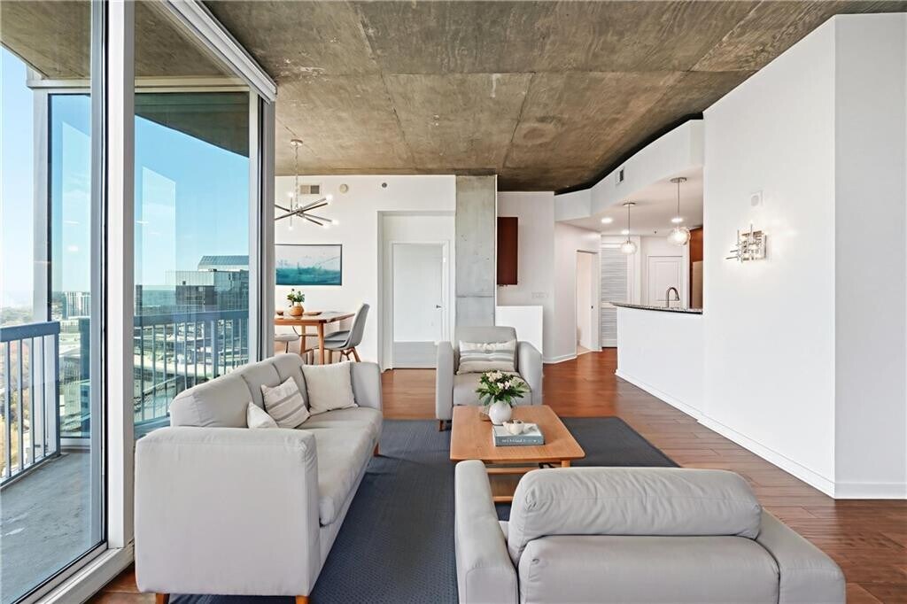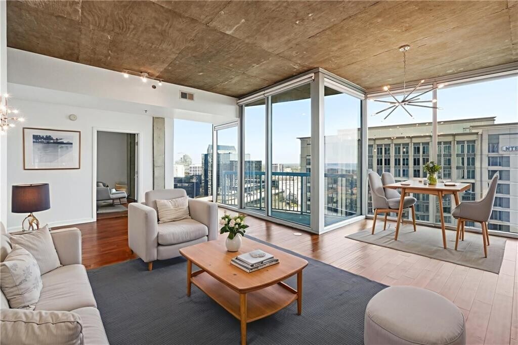 Move in Ready! Upgraded 2 Bedroom Condo at REALM Buckhead - Panoramic Skyline Views! Floor to Ceiling Windows,Large Kitchen with Stainless Upgraded Appliances and Bar,Dining Space and Large Living Space offering Amazing Views! Realx and enjoy modern features like motorized shades,enhanced lighting with USB outlets,and so much more. Two Spacious Bedrooms with Walk-in Closets with custom shelving- Washer and Dryer Included. Private Balcony. Giga Bit Speed Internet is Complimentary. 2 Assigned Parking Spaces included Luxury Amenities include,24/7 Concierge,Saltwater Pool,Outdoor Gas Grill,Outdoor Dining + Lounge Seating,Outdoor Firepit,2 Story Gym with Weight and Cardio,2 Clubrooms with Board Room,24-hour Complimentary Coffee Bar,Private Pet Walk. EASY WALK to MARTA Red Line,New Publix,Lenox and Phipps,Dining,and direct access to Path 400 the Beltline for Buckhead. Bike Room onsite offers easy bike storage
