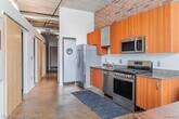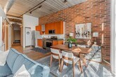 Experience elevated urban living in this stylish 1-bedroom, 1-bath corner loft just steps from the heart of Downtown Royal Oak and an award-winning neighborhood market. Located on the second floor, this unit features a private balcony, ideal for enjoying fresh air and city views with your morning coffee or evening drink. Inside, stained concrete floors and soaring 11-foot ceilings create an open, industrial feel that’s both modern and inviting. The kitchen offers sleek quartz countertops, European-style cabinetry, and stainless steel appliances, all connected to a bright living space flooded with natural light from oversized windows on two sides. Exposed brick and raw industrial accents add a layer of visual interest throughout. The bathroom is smartly appointed with a European glass shower, modern fixtures, and clean lines that complement the loft’s contemporary aesthetic. A dedicated parking space in the on-site lot is included. With I-75 and I-696 just minutes away, and easy access to everything Metro Detroit has to offer, this loft delivers the perfect blend of design, location, and convenience.
