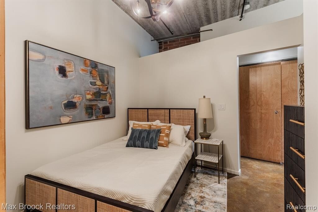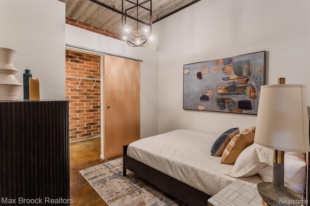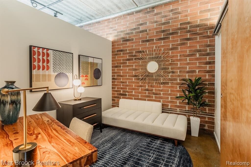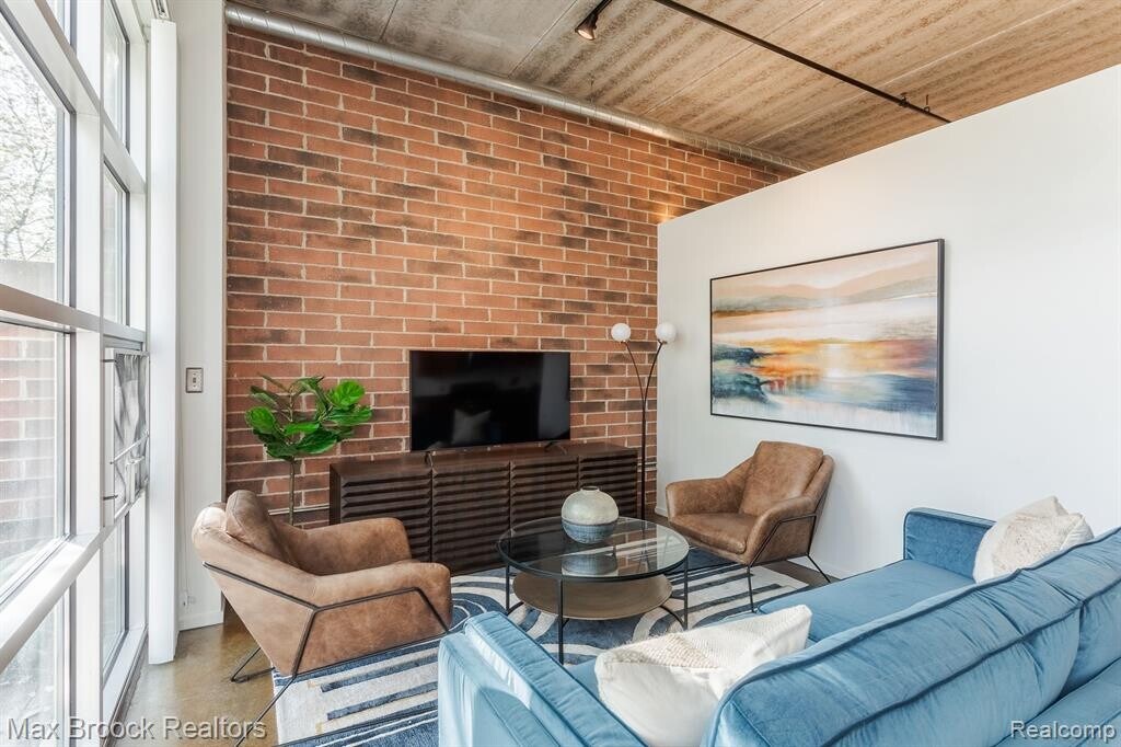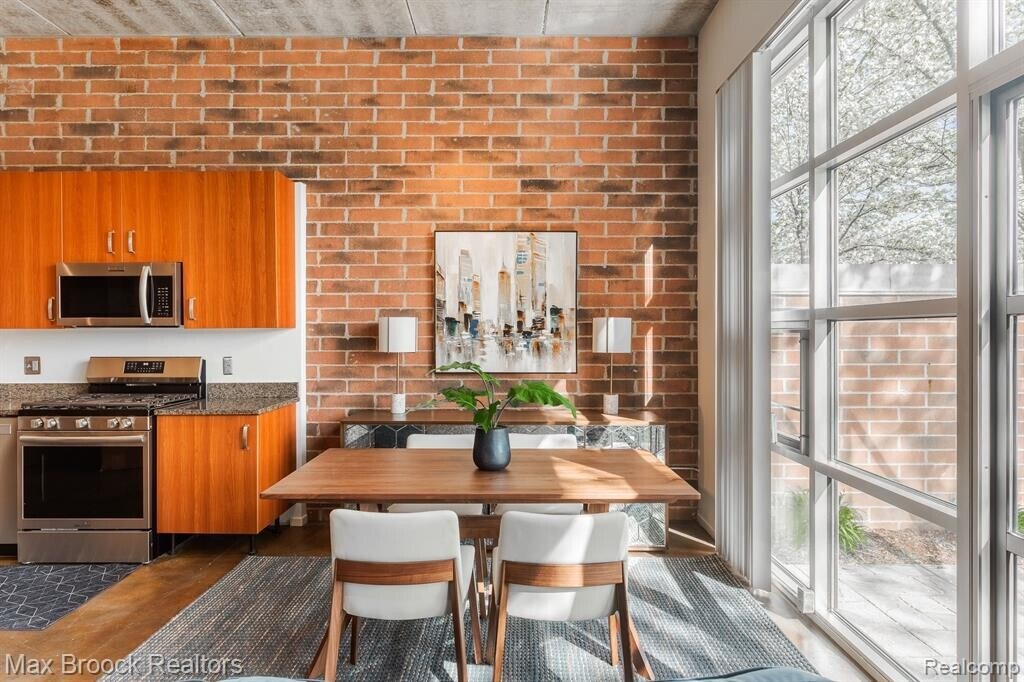 Discover urban living in this exceptional industrial-style loft, perfectly located just a short stroll from the vibrant heart of Downtown Royal Oak and an award-winning market merely steps away. This first-floor unit is a true embodiment of modern design and comfort, featuring stained concrete floors and soaring 11-foot ceilings that enhance the spacious feel of the home.The kitchen is a culinary enthusiast's dream with sleek granite countertops, European-style cabinets, and high-quality stainless steel appliances, all designed to cater to your cooking pleasures in an open layout perfect for entertaining. The living space is bathed in natural light thanks to large wall to wall windows. Retreat to the master bathroom, where functionality meets style with double sinks, European glass shower doors, and industrial sliding track doors that add a unique touch to the space. Exposed brick elements throughout the loft echo the building's industrial heritage, providing a warm, textured backdrop. Step outside onto the stamped concrete patio, an exclusive feature of this unit that includes a private entrance, offering a perfect spot for morning coffees or serene evening relaxation. Positioned within 20 minutes of almost anywhere in Metro Detroit, and with easy access to interstates I-75 and I-696, this loft is not just a home but a gateway to explore the rich offerings of the area. Experience the blend of industrial aesthetics with modern luxuries in this not-to-be-missed Royal Oak loft, an ideal choice for those seeking style, convenience, and proximity to the best of city living.