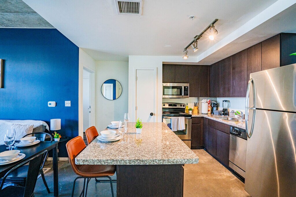 Explore downtown Phoenix from this chic and cozy apartment, perfectly nestled in a peaceful area yet close to bustling pubs, trendy restaurants, and top sights. This apartment is ideal for both work and leisure, offering a relaxing atmosphere with fast Wi-Fi and modern comforts. Enjoy a smooth stay with quick responses to any inquiries. Welcome to your Downtown Phoenix Retreat! Step into a thoughtfully designed 2-bedroom apartment that combines modern comforts with a stylish ambiance. The living room invites you to unwind with a comfortable sofa bed, a 55" 4K HDR Smart TV with streaming apps, and a coffee table for your snacks or morning coffee. The fully equipped kitchen is ready for any culinary adventure, featuring a microwave, stove, oven, refrigerator/freezer, dishwasher, coffee maker, toaster, and all necessary cookware. Enjoy meals at the dining table with chairs. The first bedroom offers a serene space with a queen-size bed, premium linens, and a dedicated office desk with an ergonomic chair. The second bedroom provides a versatile space with a full-over-full bunk bed. Freshen up in the sparkling clean bathroom stocked with towels and toiletries. Pets are welcome in designated units with a fee of $20 per night per pet. A maximum of 2 pets (dogs or cats only) is allowed, with certain breed restrictions. Bringing pets without prior approval will incur a $500 fee. Parking is available with one reserved spot, and early check-in/check-out can be accommodated for a fee of $35 for up to 2 hours, subject to availability. This apartment is ideally located in the heart of Phoenix, offering proximity to popular attractions such as the Phoenix Convention Center (0.6 miles), Chase Field (1 mile), Footprint Center (0.8 miles), and Arizona State University Downtown Campus (0.5 miles). Explore the vibrant Roosevelt Row Arts District (0.3 miles) or enjoy a slice of Phoenix history at Heritage Square & Science Park (0.7 miles). The Phoenix Sky Harbor International Airport is conveniently located 4.5 miles away, making travel easy for both domestic and international guests. Quiet hours are between 10pm and 8am every day. Violations may result in booking cancellation and removal from the property without refund. A strict no-party policy is enforced, with cameras and noise detectors in place. Unauthorized guests will incur a $100 fine per guest. Smoking is prohibited on the property, including balconies, with a $500 fine for violations. Lost or unreturned keys will result in a $500 charge. Late check-out incurs a $500 fee. Regular pest control is conducted, but occasional small bugs may be present due to seasonal changes. Includes a dedicated office desk with an ergonomic chair in the first bedroom, perfect for remote work. Fast Wi-Fi ensures a seamless work-from-home experience. [SI]