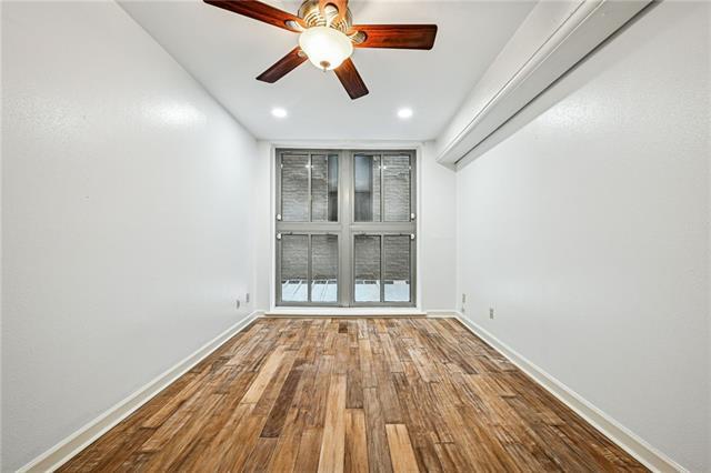 Spacious 2-bedroom, 2-bath condo at 333 Julia, Unit #311 featuring huge windows and high ceilings in the large living area and primary bedroom, overlooking a quiet block of Commerce Street. The second bedroom has a cozy window facing the courtyard. Enjoy a sense of openness while being tucked away from Julia Street. The kitchen is well-equipped with full-size appliances, washer and dryer, and ample cabinet storage. One assigned parking space is conveniently located in the outdoor lot by the exit. Residents also have access to a gym on the 2nd floor and a pool with city views on the 4th floor. A rare blend of light, space, and convenience in a prime location. Never miss out on this opportunity—call us for a viewing today!