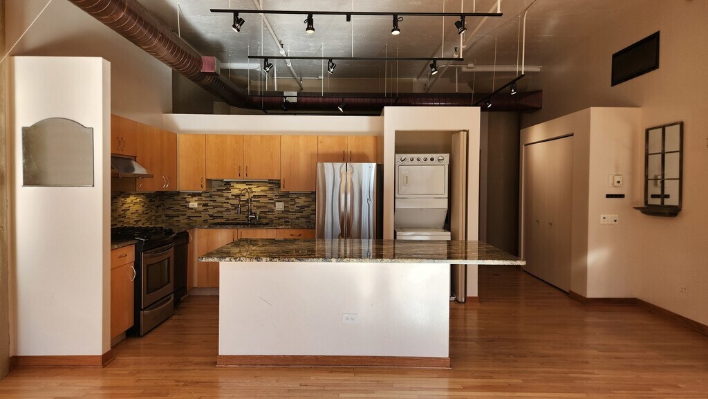 Stunning River North Loft in Union Square. Welcome to this rarely available River North gem! This spacious 2 bed / 2 bath split floor plan loft offers soaring 12' ceilings,gorgeous hardwood floors,and an open-concept living/dining area flooded with west-facing light. Cozy up by the gas fireplace or entertain at the 8' granite island in the stylish kitchen,complete with stainless steel appliances,abundant storage,and a custom backsplash. The primary suite boasts a dramatic wall of exposed brick,two walls of custom-organized closets,and a spa-like en-suite bath with double vanity and jetted tub. The second bedroom also features custom closet storage. Enjoy the convenience of in-unit laundry and unwind on your private 11' balcony. Monthly rent includes: heat,A/C,water,trash,doorman,cable,and internet-exceptional value! Garage parking is available for $250/month. MLS# MRD12462698 Based on information submitted to the MLS GRID as of [see last changed date above]. All data is obtained from various sources and may not have been verified by broker or MLS GRID. Supplied Open House Information is subject to change without notice. All information should be independently reviewed and verified for accuracy. Properties may or may not be listed by the office/agent presenting the information. Some IDX listings have been excluded from this website. Prices displayed on all Sold listings are the Last Known Listing Price and may not be the actual selling price.