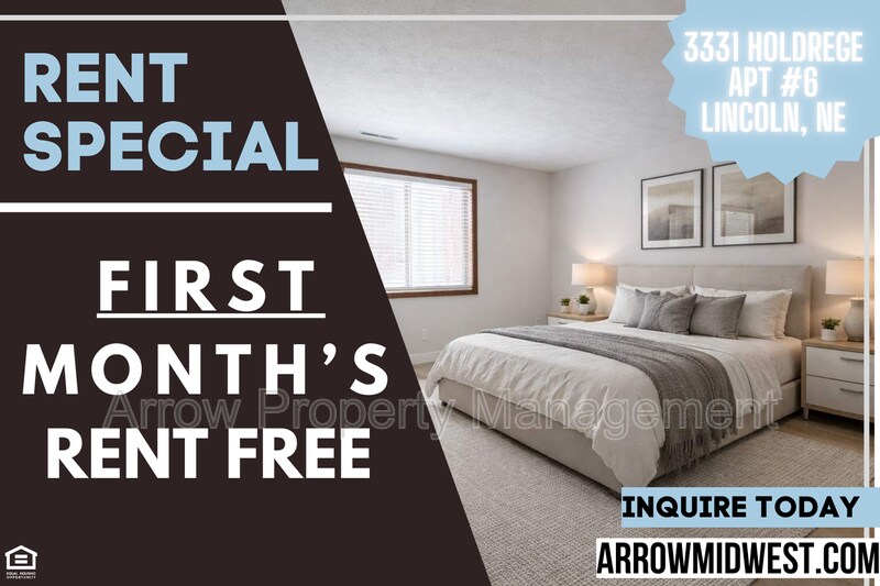 Welcome to 3331 Holdrege apt #6, a conveniently located and pet-friendly apartment located in the heart of Lincoln, NE. This spacious 2-bedroom, 1-bathroom unit features luxury vinyl flooring and modern updates. With off-street parking and shared laundry facilities, convenience is at your fingertips. Situated near East Campus, this apartment offers easy access to shopping, dining, and entertainment options. Don't miss out on the opportunity to call 3331 Holdrege home. Visit to apply and schedule a showing. Additional information- Pets negotiable with a $150 non-refundable pet deposit and monthly fee per pet. Unlimited laundry use at $10/month per tenant and Shared Utility Fee at $28/month per tenant. Tenant pays for gas and electric; landlord pays for water and trash. All Arrow Property Management residents are enrolled in the Resident Benefits Package (RBP) for $30.00/month which includes liability insurance, credit building to help boost the resident’s credit score with timely rent payments, our best-in-class resident rewards program, and much more! More details upon application. Amenities: off-street parking, dishwasher, balcony, shared laundry facilites, luxury vinyl flooring, pet friendly