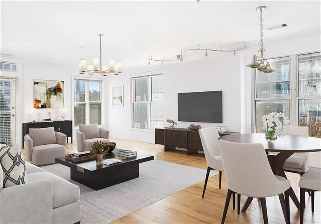 Highly desired 15th floor,1660 square foot,corner unit is now available at the sophisticated Meridian Buckhead. Traditional elegance and open living await you as you enter this welcoming two-bedroom two-bathroom home with a separate den/office. You'll love the gleaming hardwoods and neutral-colored walls,and the spacious kitchen offering granite countertops,stained cabinets and stainless-steel appliances. There's rarely found full-size laundry room with lots of storage space plus the washer and dryer remain. The large primary suite features a tray ceiling,two closets,and a private den/office and it's own private balcony. Both beautifully renovated bathrooms are generously sized with double vanities. At the end of the day,you can look forward to coming home and relaxing on one of your two private balconies,with the most stunning sunset views. Community amenities include 24/7 concierge,rooftop pool,fitness center with squash court,locker rooms with saunas,theater room,beautiful library with conference room,billiards room,and an inviting English Garden with putting green,fire pit and chef-inspired grilling stations. This lovely high-rise community,with the most friendly and helpful concierges,is surrounded by fine dining,high-end shopping,easy access to Path 400,and all that Buckhead has to offer. Parking spaces are #449 and #450.