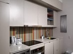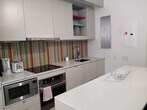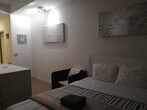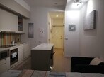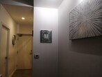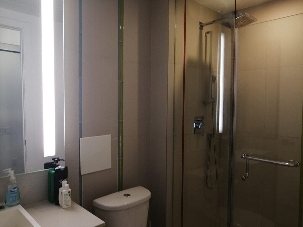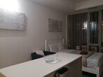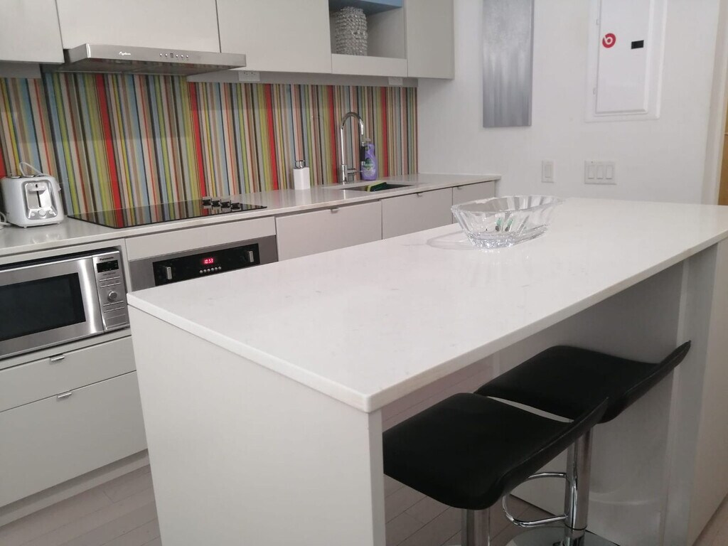 Feel at home in this beautifully designed studio that has everything you need to spend a relaxing, good quality time. This condo has a full washroom with a bathtub, a stand-up shower combo, in-suite laundry (washer-dryer combo), and a fully equipped kitchen. [SI]