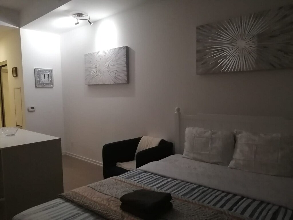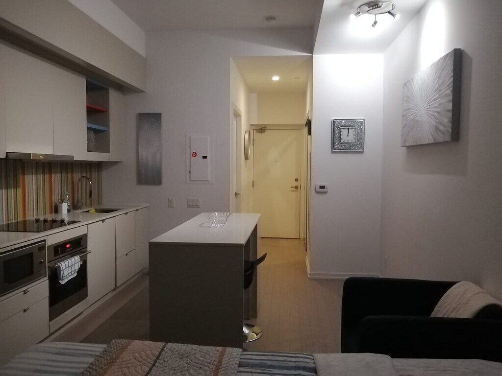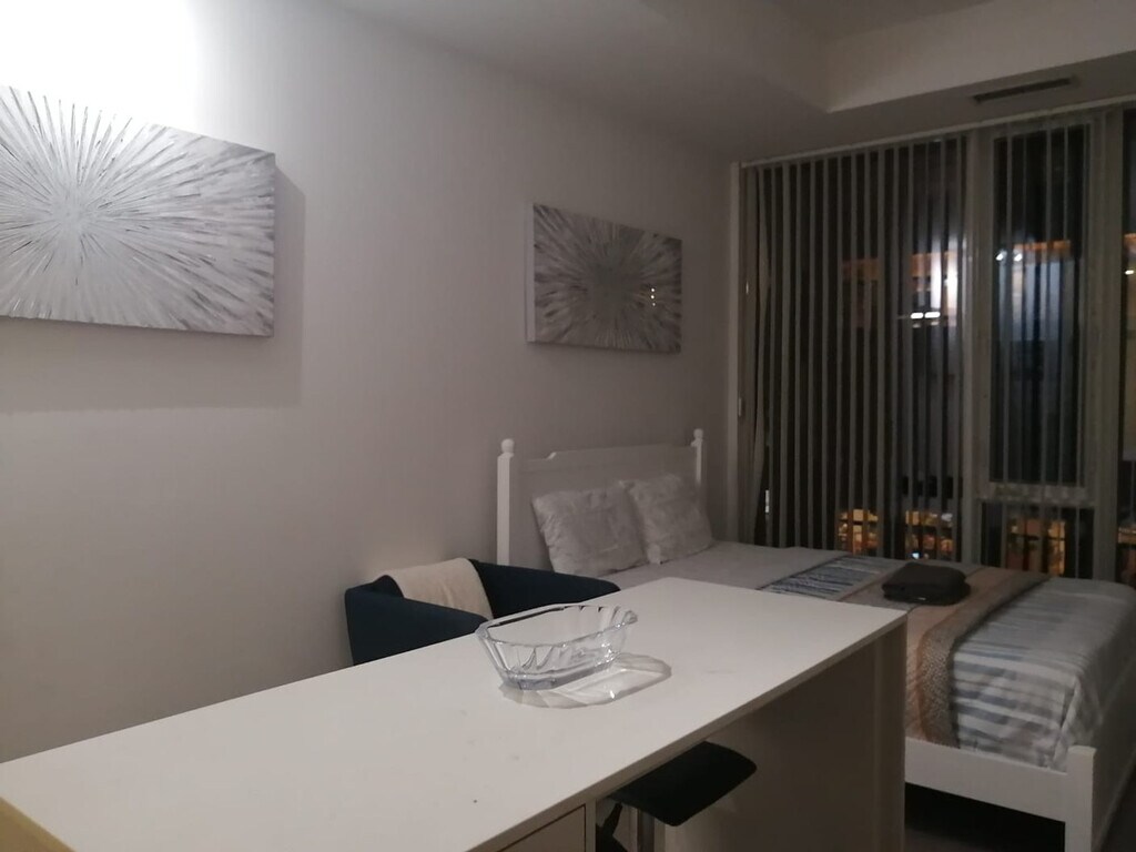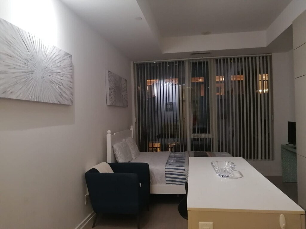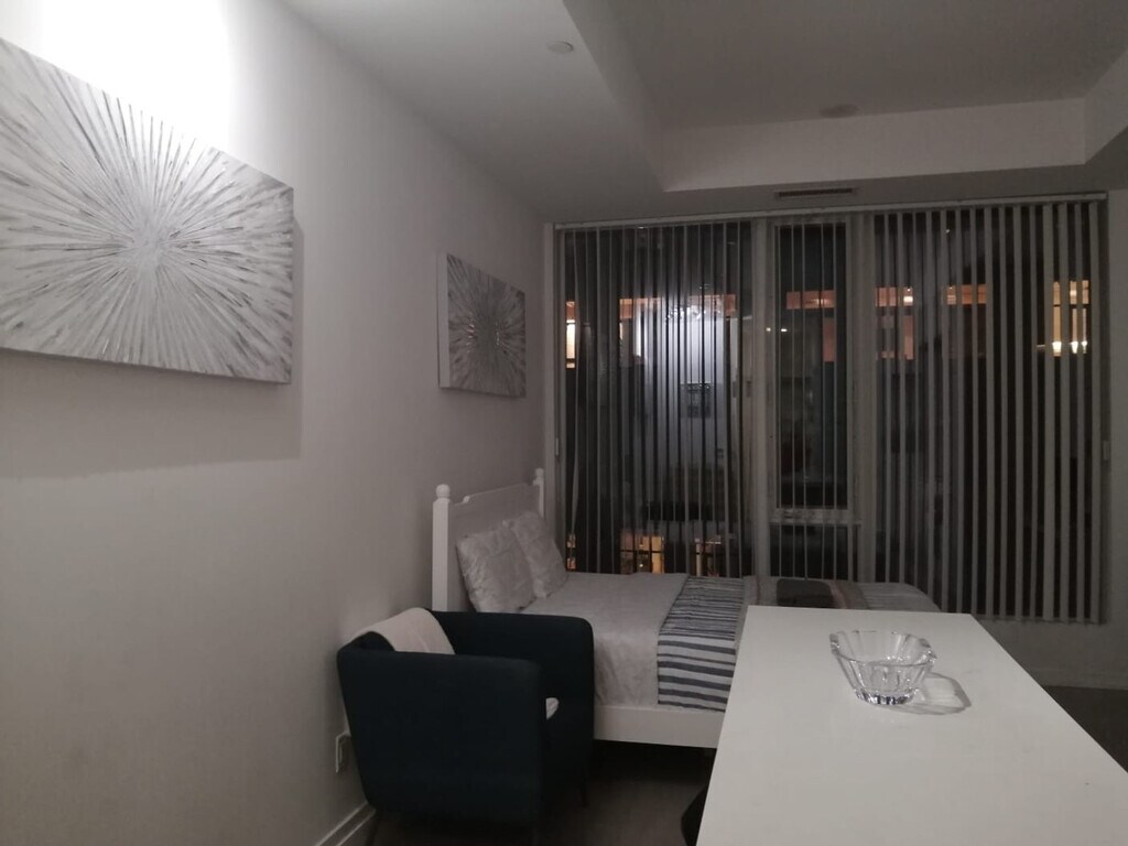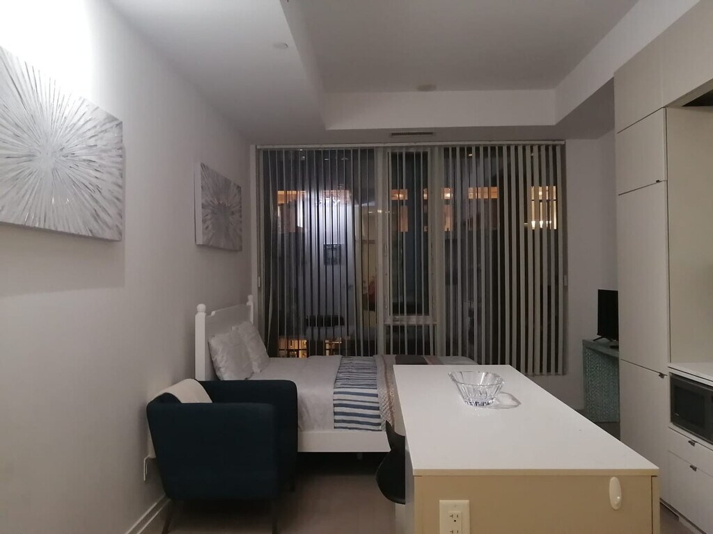 Experience urban sophistication in this stunning luxury studio condo at 101 Peter Street, nestled in the heart of Toronto’s vibrant Entertainment District. Perfect for business travelers, tourists, or couples seeking a stylish city escape, feel at home in this modern short-term rental. This sleek, fully furnished studio condo boasts floor-to-ceiling windows with breathtaking city views, contemporary decor, and high-end finishes. Enjoy a spacious open-concept living area, a gourmet kitchen with stainless steel appliances, and in-suite laundry. Stay connected with high-speed Wi-Fi and unwind with a smart TV featuring streaming services. An extra foldable single bed is available. Steps from iconic landmarks like the CN Tower, TIFF Bell Lightbox, and Rogers Centre, this prime location immerses you in Toronto’s cultural and nightlife hub. Savor world-class dining, trendy bars, and theaters along King Street West, or explore nearby Queen Street West for boutique shopping. With Osgoode and St. Andrew subway stations minutes away, the entire city is at your fingertips. [SI]