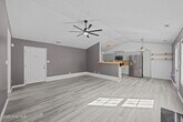 Enjoy the peace and privacy of this beautifully updated 3-bedroom, 2-bath home located at the end of a dead-end road, adjacent to protected forest lands. Vaulted ceilings in the living room and kitchen create an open, airy feel, while modern updates make this home move-in ready. The kitchen features stainless steel appliances, including a microwave, refrigerator, and brand-new dishwasher, sealed butcher block countertops, soft-close cabinets, LED under-cabinet lighting, and a pantry for extra storage. Laundry is convenient with W/D hookups in a closet near an ample linen storage area. The master suite boasts tray ceilings, a soaking tub, and a separate standing shower. An additional full bathroom provides direct access to one of the bedrooms. Step outside to the fenced backyard with a large shed, perfect for storage or hobbies. Additional features include a two-car garage, oversized driveway, new ceiling fans, updated light fixtures, waterproof LVP flooring throughout, and tile in the bathrooms. Located less than 5 minutes from MCAS Cherry Point main gate, this home combines convenience with tranquility—ideal for those seeking privacy without sacrificing location. Enjoy the peace and privacy of this beautifully updated 3-bedroom, 2-bath home located at the end of a dead-end road, adjacent to protected forest lands. Vaulted ceilings in the living room and kitchen create an open, airy feel, while modern updates make this home move-in ready. The kitchen features stainless steel appliances, including a microwave, refrigerator, and brand-new dishwasher, sealed butcher block countertops, soft-close cabinets, LED under-cabinet lighting, and a pantry for extra storage. Laundry is convenient with W/D hookups in a closet near an ample linen storage area. The master suite boasts tray ceilings, a soaking tub, and a separate standing shower. An additional full bathroom provides direct access to one of the bedrooms. Step outside to the fenced backyard with a large shed, perfect for storage or hobbies. Additional features include a two-car garage, oversized driveway, new ceiling fans, updated light fixtures, waterproof LVP flooring throughout, and tile in the bathrooms. Located less than 5 minutes from MCAS Cherry Point main gate, this home combines convenience with tranquility—ideal for those seeking privacy without sacrificing location.