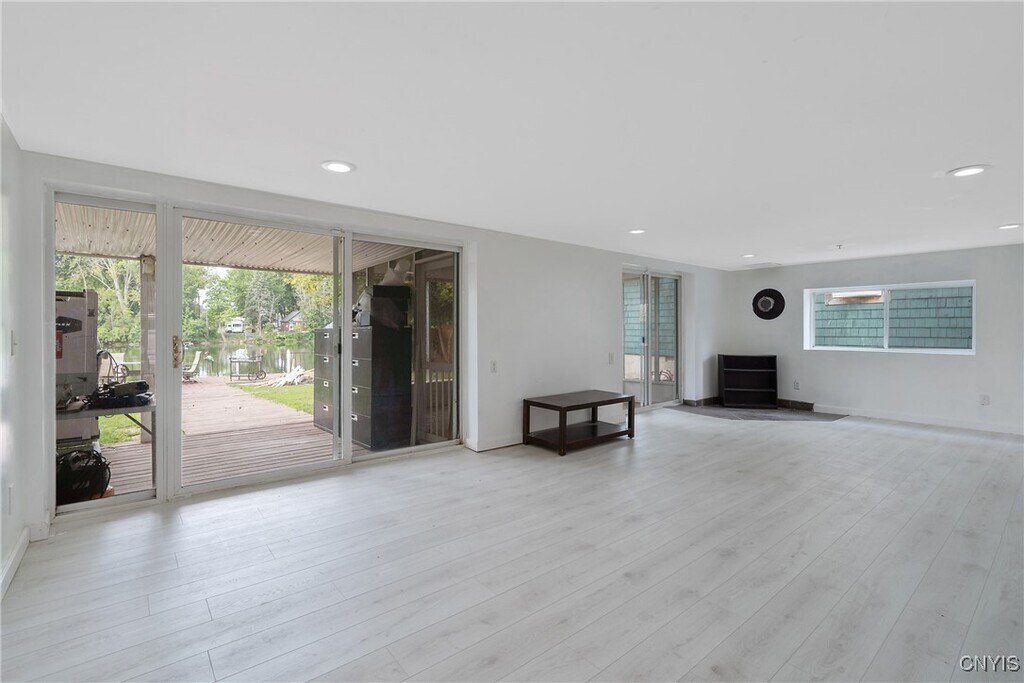 Waterfront Ranch Rental on the Seneca River! Enjoy peaceful waterfront living in this spacious first-floor 2-bedroom,1.5-bath ranch-style rental. This home features a large,updated kitchen with washer/dryer hookups,a bright 3-season sunroom,and an expansive living room/dining room perfect for entertaining or relaxing with a view. Step outside to the 60' deck and dock—ideal for fishing,lounging,or simply taking in the stunning river views. The property also offers a private driveway and carport,providing convenient off-street parking. Located close to all local conveniences,this home offers both comfort and convenience in a beautiful waterfront setting. Rent includes water and trash. Tenant is responsible for utilities. Minimum credit score and clear background check is required. The second unit- upstairs,is also available to rent. Both units can be combined for a total of 4 bedrooms,3.5 baths. Don’t miss the chance to live on the river—schedule a showing today!