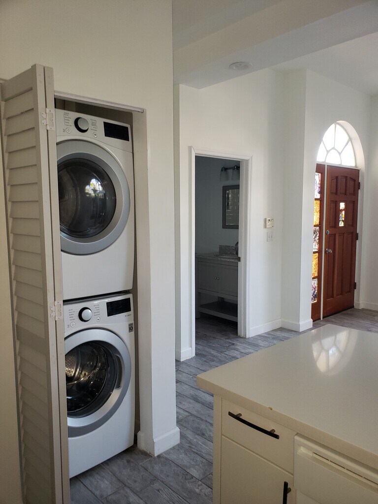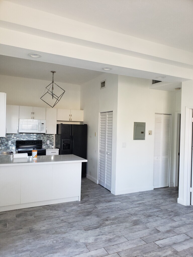 In Miami Coconut Grove area, gated community with pool, updated unit has walk-in closet, LG front loader washer/dryer in unit, high ceilings, gray wood like porcelain flooring throughout, white wood kitchen cabinets with quartz counter tops and glass/stainless steel back splash, light gray roman shades in living room for window and impact sliding door that leads out to private gated wrap around paved patio area, comes with 1 assigned parking space. Move in requirements: first, last, security deposit ($7500), application fee to management co, and 1/2 month pet fee if applicable. NO smoking & no realtors.