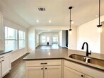 Welcome to Blanco Vista, where this 2024 single-story home blends modern finishes with a thoughtful layout and resort-style amenities. Built with a focus on function and style, the layout provides both open gathering areas and private retreats. The chef-inspired kitchen features sleek quartz counters, stainless steel appliances, built-in 5-burner gas cooktop, convection oven, designer backsplash, pendant lighting, and a large breakfast bar ideal for coffee, casual dining, or gathering with friends. The dining and living spaces flow effortlessly together, creating a true open-concept layout. Luxury vinyl plank flooring, abundant windows, and high ceilings enhance the sense of space and light, while a custom accent wall anchors the living room with a stylish focal point. This plan offers rare versatility with two bonus areas: a designated office with double doors for privacy, PLUS a bonus flex room off the living area that easily adapts as a playroom, media lounge, workout space, or second office. A private primary retreat showcases dual quartz vanities, a soaking tub, oversized shower with modern black-framed glass, and a massive walk-in closet you have to see to appreciate. Two additional spacious bedrooms and a full guest bath provide comfort for family or visitors. The expansive backyard includes a new extended patio sized for dining, grilling, or lounge seating beneath the Texas stars. Green space offers room for pets, play, or just a nice view with morning coffee — an outdoor area designed to be as versatile as the home itself. As part of Blanco Vista, residents enjoy a Junior Olympic pool, splash pad, fishing pond, trails, playgrounds, pavilions, and Blanco River access at Five Mile Dam Park. Families appreciate the on-site Blanco Vista Elementary, a TEA-recognized STEM magnet. All this, just minutes to Texas State University, San Marcos shopping and dining, with quick I-35 access placing downtown Austin less than 40 minutes away.