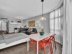 Fall in love with this move-in ready, fully furnished 1-bedroom, 1.5-bath condo in the heart of Aventura. Tastefully renovated with high-end finishes, it features a spacious white kitchen with stainless steel appliances, wood-look tile floors, and a Murphy bed in the living room for guests. Enjoy beautiful sunsets from the large balcony, accessible from both the living area and bedroom. Located in a charming all-ages boutique building offering a heated pool (under renovation), gym, party room, BBQ are, cable and security 24 hours. Prime location on a 3-mile path around Turnberry Golf Course. Close to top-rated schools, Aventura Mall, fine dining, shopping, entertainment, houses of worship, the beach, I-95, and in the middle of Miami and Ft Lauderdale airport. City shuttle available. Pool and balconies are temporary closed due to renovations. MLS # A11989800