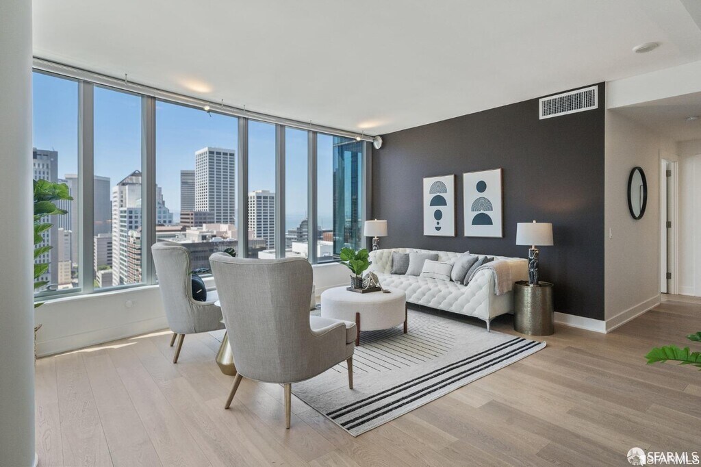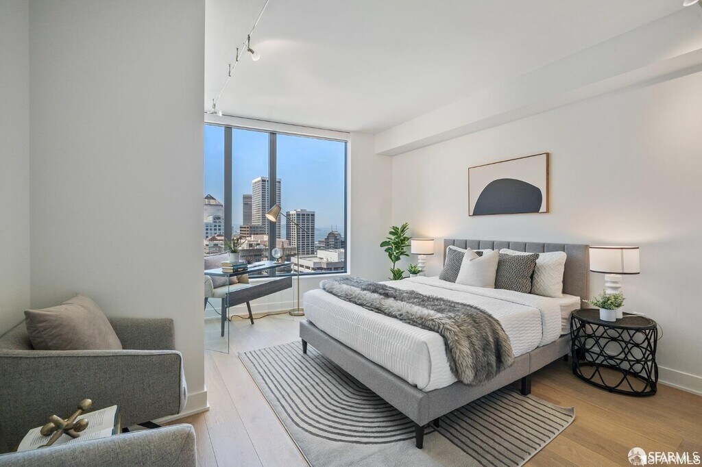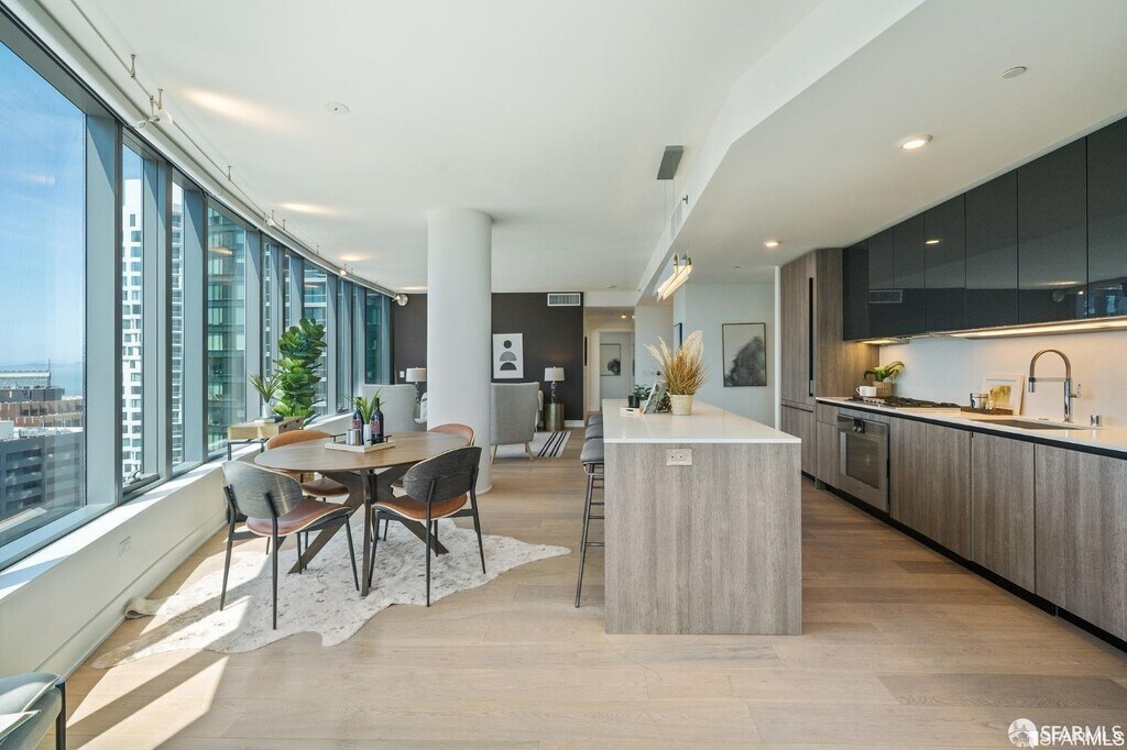 Unforgettable Bridge, Water & Sunrise Views - 1 Month Free! Sign by Oct 11 & Move in by Nov 1 to receive 1 month free rent. Live high above it all in this sought-after C-stack 2BD/2BA corner home on the 19th floor at LUMINA, with dramatic Bay Bridge and water views, flooded with natural light and daily sunrises. A signature curved wall of floor-to-ceiling windows brightens the open living space with wide-plank hardwood floors and motorized shades. Step onto the private balcony to enjoy the views. The chef's kitchen features Gaggenau appliances, SieMatic cabinetry, and Caesarstone quartz counters. The primary suite has a custom walk-in closet and a spa-like bath with dual vanities, soaking tub, and walk-in shower. Offered furnished and move-in ready with elegant RH pieces, a 65 TV, and more. Woodlands Market downstairs makes grocery trips effortless, and the Embarcaderojust two blocks awayoffers coffee, dining, and walkability. Enjoy LUMINA's resort-style amenities: 24-hour concierge and valet, 7,000-sq-ft gym, 70-ft saline lap pool, yoga/Pilates, steam/sauna, rooftop BBQ terraces with water views, private dining, club lounge, screening room, playroom, pet spa, bike storage, and more.