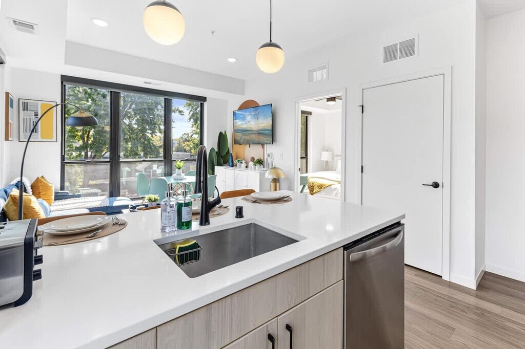 Feel at home in this inviting 2-bedroom apartment with 1.5 bathrooms, nestled in a prime location near downtown Minneapolis. This modern, luxurious apartment offers a combined living and dining area furnished with stylish decor. The fully equipped kitchen features an oven, stove, refrigerator/freezer, dishwasher, coffee maker with coffee essentials, sink, glasses, silverware, and pots and pans. A washer and dryer are included for your convenience. The bathroom is stocked with essential toiletries. Enjoy the balcony with chairs and a table. Pets are welcome for an additional fee. SP+ parking garages are accessible within a 7-minute walk (0.3 miles). Located in the charming Saint Anthony West neighborhood of Minneapolis, this apartment community is just a block away from BF Nelson Park and Nicollet Island. Enjoy urban living and outdoor recreation, with easy access to bike trails through Boom Island Park, the lighthouse, and the Stone Arch Bridge. The community is surrounded by popular restaurants and breweries, such as Brasa, Masu Sushi, Bunny’s Bar & Grill, Young Joni, The Anchor Fish & Chips, Dangerous Man, Pryes Brewing, Indeed Brewing Co, Tattersall Distilling, 612Brew, Norsemen Distillery, and Minneapolis Cider Co. Downtown Minneapolis and the U.S. Bank Stadium are approximately a 5-minute drive or a 20-minute walk. The Target Center and Target Field are approximately a 7-minute drive or a 25-minute walk. All adult guests need to pass a background check before arrival. An $8 background check fee may be charged for any additional guests not listed in the original booking. Smoking on the property will result in a $1000 fine. Evidence of unregistered pets will result in a $500 fine. There is a $1000 surcharge charged to groups that are deceitful about the use of the unit. A surcharge of $350 per undeclared guest per night will be applied for each unapproved guest. Under no circumstances is the security camera to be removed or disabled in any way, and any cameras removed or disabled will be considered a violation of the booking and a fine of $500 is applicable. A $50/hour penalty is applied if guests fail to check out late. Outdoor shoes are to be left by the front door and not to be worn throughout the inside of the unit. Bedroom 2 includes a workspace with a table and chair. Registration Number: 419614 [SI]