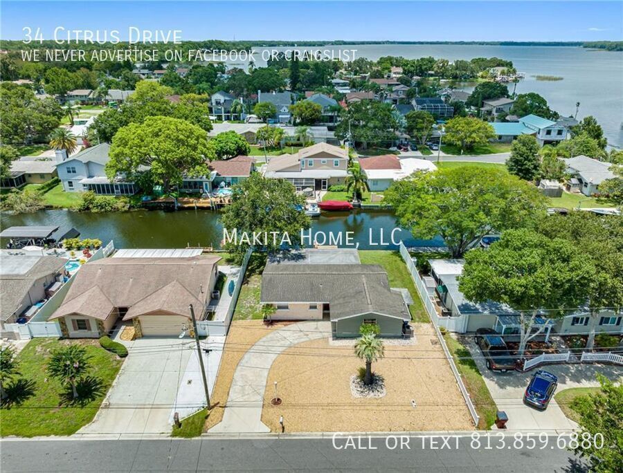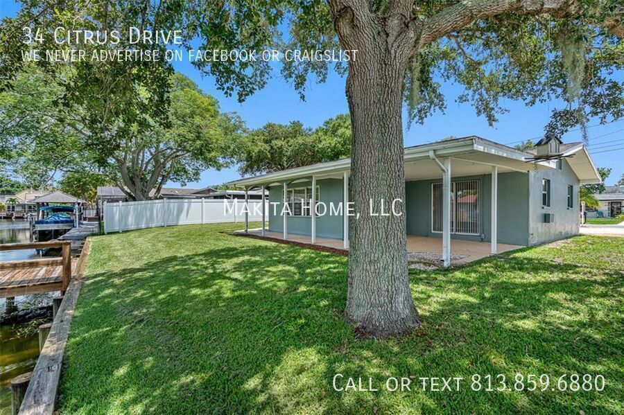 Waterfront living at its finest on a canal leading to Lake Tarpon—the largest lake in the Tampa Bay area. This charming 2-bedroom, 2-bath home with a one-car garage is ideally situated at the end of a quiet cul-de-sac, offering both privacy and peaceful surroundings. Inside, you’ll find an updated kitchen featuring 42-inch maple cabinetry, granite countertops, and a convenient breakfast bar that opens seamlessly to the spacious living area—perfect for everyday living and entertaining. Terrazzo flooring runs throughout the home, adding character and durability. The inviting living room includes a cozy fireplace and built-in shelving, while large windows fill the space with abundant natural light. A bright Florida room provides additional living space and leads through French doors to a covered patio—an ideal spot to relax and take in tranquil canal views and the shaded backyard. The spacious primary bedroom offers direct access to the patio through sliding glass doors. Comfort is ensured year-round with central A/C and ceiling fans in both bedrooms and main living areas. The oversized one-car garage provides ample room for both parking and storage, with washer and dryer hookups conveniently located inside. Enjoy direct access to Lake Tarpon, a 2,600-acre spring-fed lake known for boating, fishing, wakeboarding, and jet skiing—all from your private dock right in your backyard. Conveniently located near shopping, dining, beaches, hospitals, marinas, local parks, and the Pinellas Trail. Situated within a highly rated school district. Don’t miss this rare opportunity—apply today to experience waterfront living in one of the area’s most desirable locations!