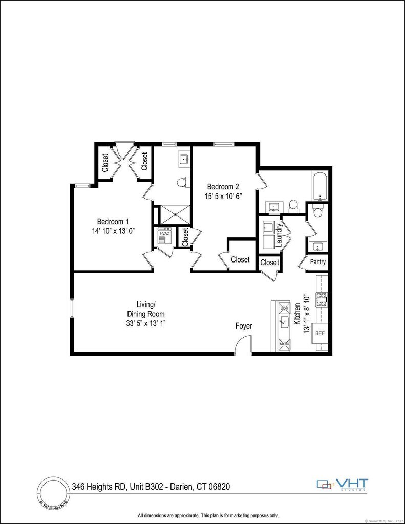 Call for Availability - Heights Crossing, a new, upscale apartment development in Darien, offering luxury amenities combined with immediate access to New York City via the train station across the street. This new construction 2 BR with 2 -1/2 bath unit features GE appliances, custom cabinetry, wood-style Luxury Vinyl Tile flooring, and well-appointed finishes. Open floor plan, eat-in kitchen w/ Quartz countertops, backsplash, pantry, seated bar-height island, half bath and in-unit washer/dryer. Spacious en-suite bedroom features dual closets and full bath with stall shower. Second en-suite bedroom features custom walk-in-closet and full bath with shower/tub combo. Soundproofing between apartment floors and exterior foam insulation for sound mitigation. This secure access building features garage parking, on-site staffing, elevator, fitness center, golf simulator, office spaces, trash chutes, event space, bicycle storage, package/mailroom. Heights Crossing will also feature a beautiful fountain courtyard with retail shopping below. MLS# 24106251