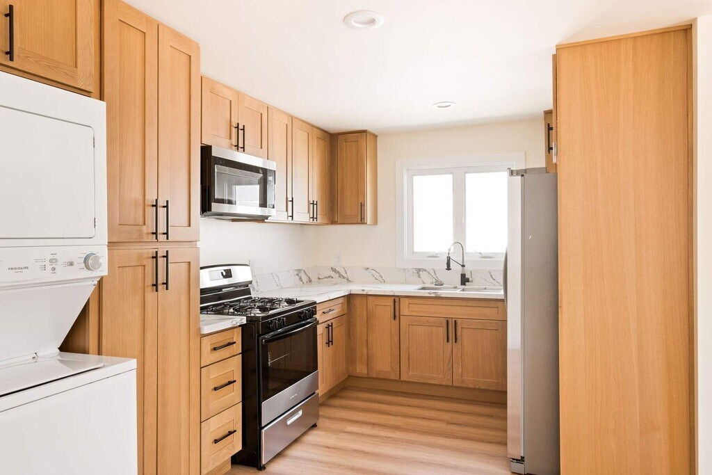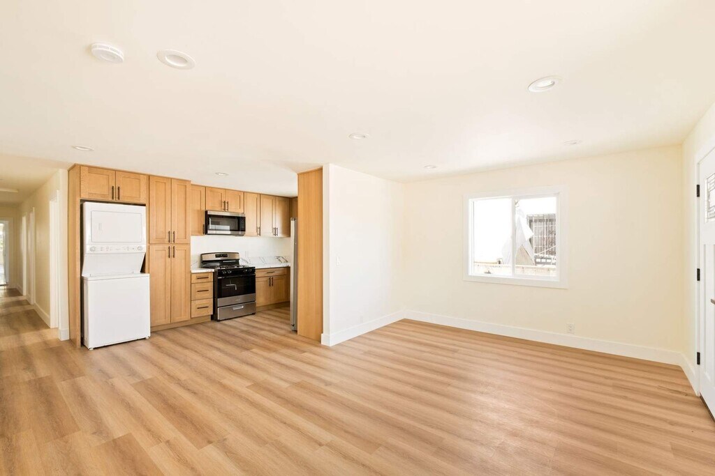 Modern living in the heart of Highland Park. This newly renovated 3-bedroom, 2-bath home pairs clean design with everyday functionality, just blocks from Figueroa Street's cafes, restaurants, and nightlife. A welcoming front porch nods to the home's historic character and provides a gracious entry. Inside, the open layout is bright and versatile, with wide windows and seamless flow between living, dining, and kitchen. The kitchen blends sleek design with efficiency, featuring brand-new appliances: refrigerator, gas range with oven, microwave, and stacked washer/dryer. The private primary suite offers a contemporary bath with a double vanity, arched mirrors, and elegant gold fixtures. Two additional bedrooms share a second full bath finished with designer tile and matte black accents. Throughout, clean lines and thoughtful finishes create a refined feel. Ductless heating and air ensure year-round comfort, and off-street tandem parking is included. This residence delivers the luxury of a newly remodeled home with the convenience of an ideal Highland Park location. MLS# 26653687