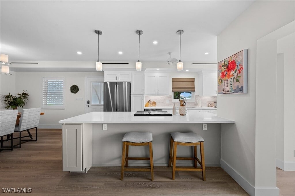 Perfect Naples Location,completely renovated 3-bedroom unit offers 1 covered parking space and the ease of a first-floor entry. This condo offers everything you need for your vacation getaway. Designed with sophisticated,coastal-inspired finishes throughout,giving it a charming coastal flare. Step inside to an open,light-filled layout that frames unobstructed views of Moorings Bay. The stunning kitchen features quartz countertops,a generous island with seating,top-tier stainless steel appliances,and custom cabinetry—perfect for entertaining or everyday living. The large bedroom suite boasts dual closets and a beautifully appointed en-suite bath,while the additional bedrooms and bath provide comfort for guests. In unit laundry room adds convenience. Enjoy your morning coffee or host sunset gatherings at the waterfront pavilion just outside your door. Vedado Way Beach access is just across the street for a day on the sand,or explore the boutiques and dining at Venetian Village nearby. Located on the prestigious Gulf Shore Blvd,this is Naples waterfront living at its best—close to world-class shopping,dining,and the sparkling Gulf beaches.