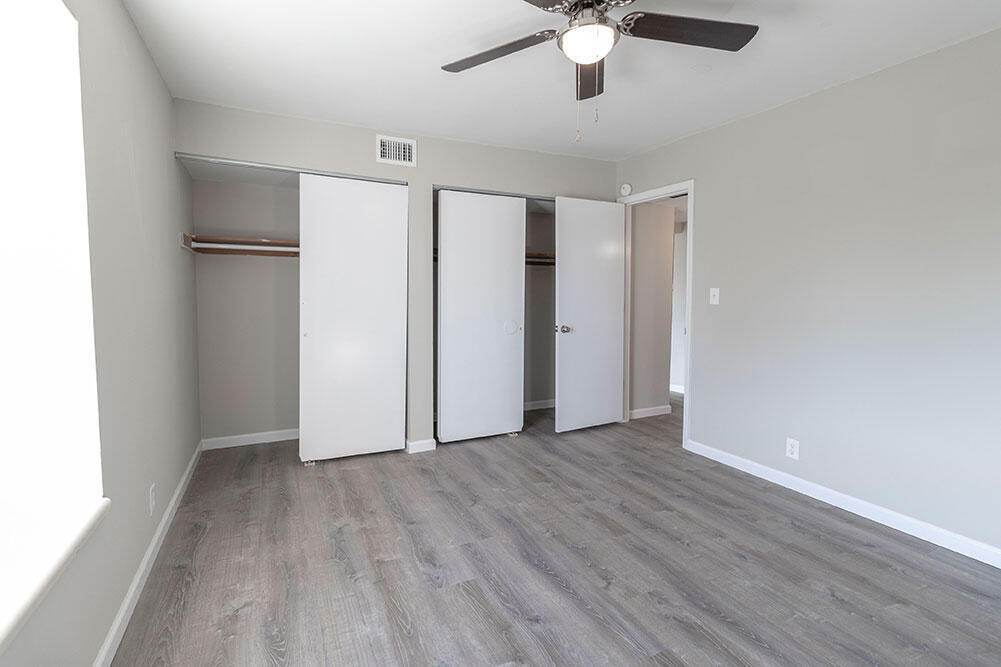 Fully remodeled two-bedroom apartment featuring vinyl plank flooring,new cabinets,and sleek stainless steel appliances. The home includes spacious bedrooms equipped with ceiling fans. The living room offers plenty of space for relaxing or entertaining,and on site parking is available. On-site washer and dryer provide added convenience,and the central location is within walking distance to multiple shopping centers.