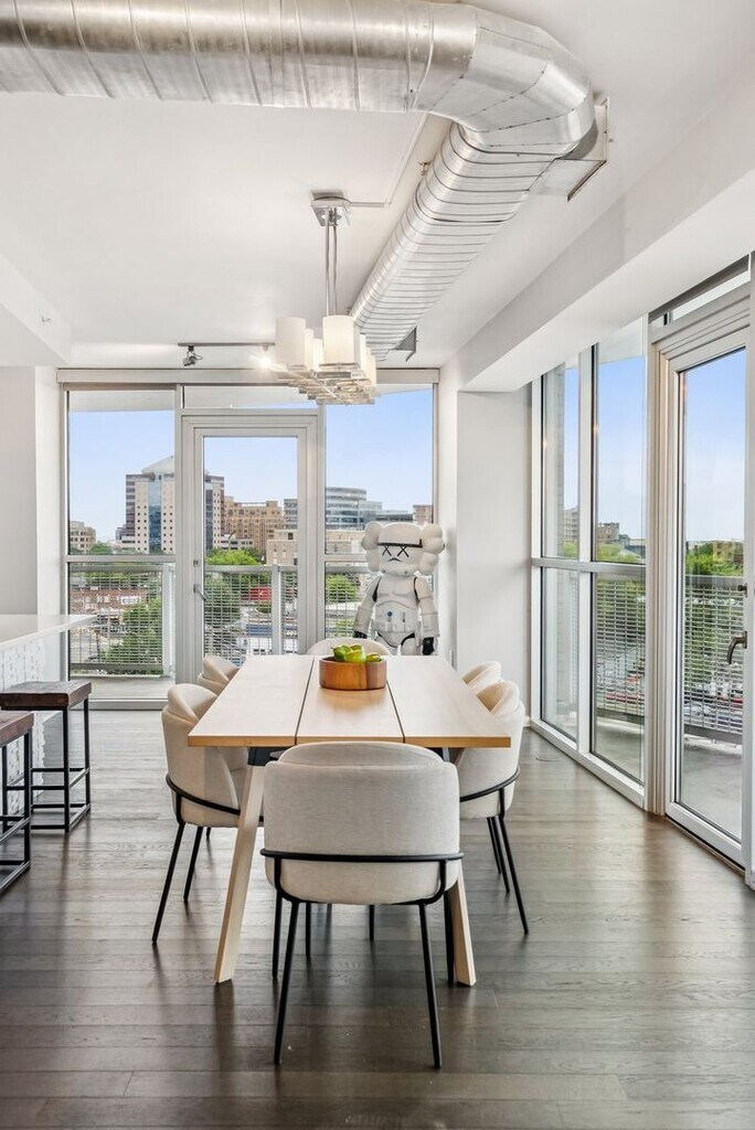 - Additional Property Details- Welcome to 3409 Wilson Blvd! This absolutely stunning 2-bedroom, 2-bath corner penthouse offers over 1,500 sq. ft. of luxury living with sweeping city views. The open-concept floor plan is designed for entertaining, featuring an expansive living room with floor-to-ceiling windows and direct access to one of two private balconies. The modern kitchen boasts tall white cabinetry, quartz counter tops, beautiful backsplash, brand-new stainless steel appliances, a center island with bar seating, and recessed lighting. The primary suite impresses with custom built-ins, a chandelier, private balcony access, a walk-in closet, and a spa-inspired en-suite complete with designer tile, a walk-in shower with built-in bench, and a floating vanity accented by a striking backsplash. The spacious guest suite offers ample storage, custom built-ins, and its own private bath with high end finishes. Enjoy over 500 sq. ft. of outdoor living space across multiple balconies, perfect for entertaining or relaxing in complete privacy. Ideally located in Ballston, you’ll be just steps from metro, shopping, fine dining, nightlife, parks, and more. A $1000 pet fee is applicable and will be considered on a case by case basis. Parking: 1 assigned space, with an additional space available for an additional $200 per month