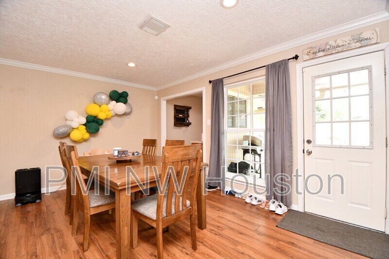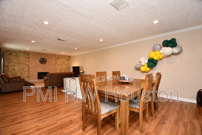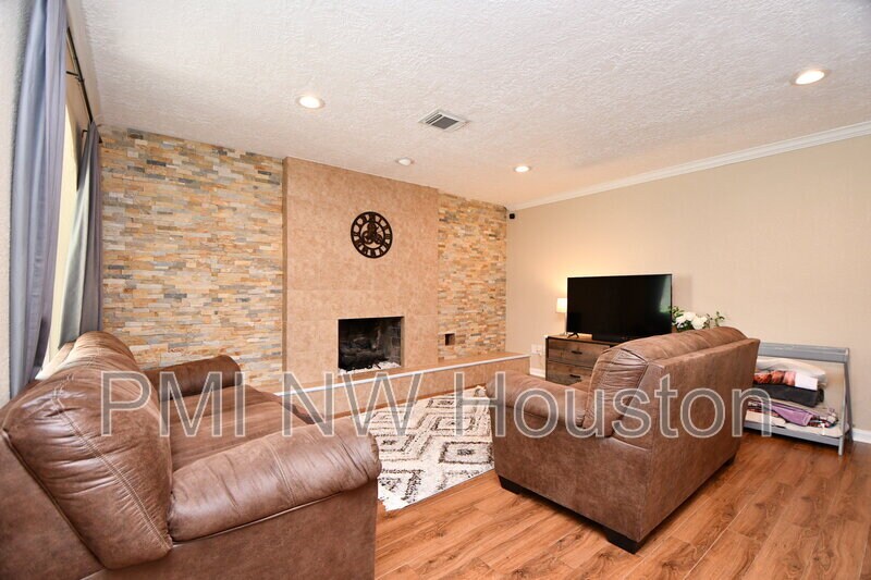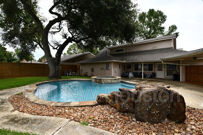 This 4-bedroom,3-bathroom home in Quail Valley Thunderbird West Sec 1 is beautifully maintained in a peaceful,tree-lined neighborhood. Residents enjoy exclusive HOA amenities,including a community pool,tennis courts,walking trails,and clubhouse access for events. The kitchen features new cabinets,stainless steel appliances,and high-end granite countertops. Bathrooms are updated with modern fixtures,and the first-floor master suite includes a spacious walk-in shower. Beautiful flooring flows throughout,complemented by a stone fireplace and two main-level bedrooms,making it perfect for families. The backyard offers a custom pool and a large covered patio,ideal for entertaining or relaxing. Tenant is responsible for $160/month pool maintenance. The property is unfurnished,and photos are for illustrative purposes only. MLS# 43340320