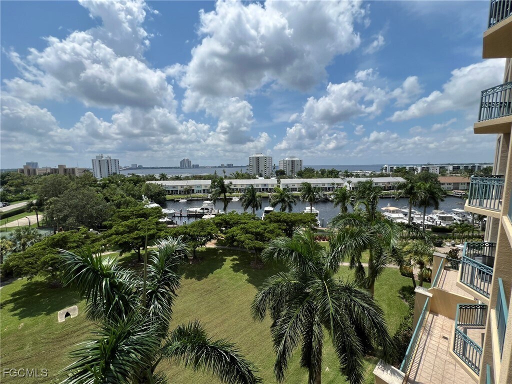 Furnished turnkey rental. Available 2027 season. Enjoy sunrise views overlooking the marina,river,and downtown Fort Myer's skyline. Granite counters,42" wood cabinets,floor to ceiling glass from this 11th floor condo. Den has pull out couch. North Star is situated on 12.5 lush landscaped gated acres with southern facing pool & spa,lighted tennis courts,pickle ball,fitness center,aerobics room,steam rooms,card & billiards room,movie theater,clubhouse,bocce ball and more. All overlooking marina,river and a free seasonal trolley ride across the bridge to downtown Fort Myer's newly revitalized River District with over 60 restaurants,galleries,shops,boutiques and more. Lease a slip in the marina or walk down the marina to four waterfront restaurants.