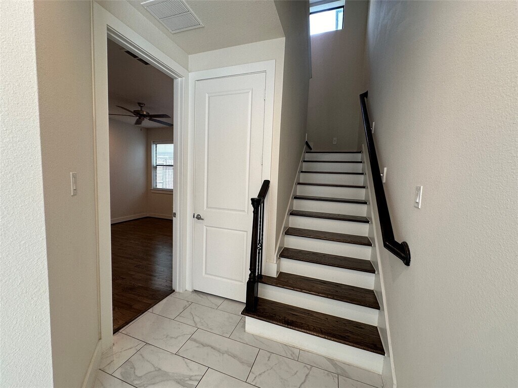 3-bedroom,3.5-bath corner unit with controlled access gate. The entryway opens to a hallway,access to a 2-car garage with overhead storage. 1st floor includes a bedroom with a full bathroom,and access to the backyard. 2nd floors includes 14-foot ceiling living,dining,and kitchen space. There's a built-in desk,as well as a balcony. The kitchen is equipped with full applicances. Security features include pre-wired ADT sensors on doors and windows,and a Blink camera system. On the 3rd floor,you’ll find the washer and dryer,as well as the primary bedroom,with an en-suite bath featuring double sinks,a soaking tub,a separate walk-in shower with bench seating,with a walk-in closet with built-in drawers. The 3rd bedroom includes its own full bathroom. Additional highlights include smart thermostats and energy-efficient LED lighting throughout. *Online apps only,please submit all required documents at time of application*$100,000 Liability to Landlord Insurance Policy Required* MLS# 35366216