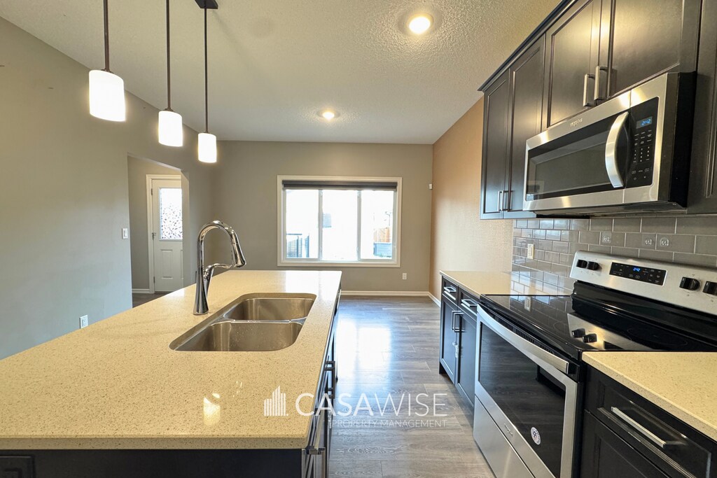 BEAUTIFUL 4-Bed/3.5-Bath Family Home in Desrochers With a DBL Garage and A/C! ? Comfortable and functional layout. Ideal for families or shared living. ? Modern kitchen with quartz countertops and stainless steel appliances. ? Spacious bonus room — perfect for a home office, playroom, or entertainment space. ? 4 generously sized bedrooms. ? 3 full bathrooms and a half bath on the main level. ? Convenient in-suite laundry for effortless living. ? High-velocity furnace for efficient heating. ? Centralized air conditioning for year-round comfort. ? Double rear detached garage for added convenience and extra storage space. ? Landscaped and fenced yard with a patio. This unit is perfectly situated in the Desrochers area, providing easy access to local plazas, schools, and the James Mowatt Trail. Enjoy the convenient proximity to dining, grocery stores, cafes, as well as quick access to Queen Elizabeth Highway and the Anthony Henday, making commuting and daily errands seamless. Utilities, snow removal and lawn maintenance are tenant's responsibility. One pet is negotiable with a fee of $50/month. Pet approval is at the time of the application and not guaranteed thereafter. No Smoking. Professionally managed by Casawise Property Management. Only applications received through our site will be processed: If interested, please provide us with your name, phone number, available times for viewings and a little background about you (when do you need the unit for, how many people would be living in the unit, etc.). Thank you! ***Disclaimer: Updated photos to come.***