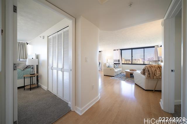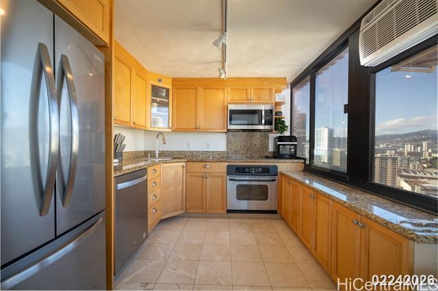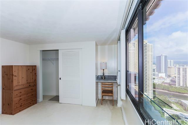 Welcome to your new home at The Windsor in Waikiki! This beautiful and unique split-level, one-bedroom, one-and-a-half-bathroom unit offers stunning views and unparalleled convenience. Experience a unique floor plan with the main living area upstairs and the private quarters downstairs. The upper level features a full kitchen, a comfortable living room, and a convenient half bath. Three window unit ACs ensure comfort throughout the unit, while the lower level includes a spacious bedroom, a full bath, and a dedicated laundry area. Enjoy breathtaking, panoramic views of Diamond Head and the vibrant Waikiki landscape from your windows. This exceptional unit also comes with a covered, secured parking stall, plus the added convenience of ample visitor parking. Located just one block from the world-famous Hilton Hawaiian Village and the pristine sands of Waikiki Beach, you are perfectly positioned to walk to everything. Enjoy easy access to the area's best dining, shopping, and entertainment options. Electricity included up to $150. Water and sewer are included as well as basic cable. The building itself offers a variety of fantastic amenities. Relax and unwind in the beautifully maintained heated pool or practice your golf skills on the on-site putting green. Stay active with a well-equipped gym. Peace of mind is provided by 24/7 security and a resident manager. The building also boasts a beautiful waterfall feature, adding to the tranquil atmosphere. Don't miss the opportunity to live in this exceptional unit. Schedule a showing today and discover the best of Waikiki living! Discover refined urban living at The Windsor, a premier residential high-rise located at 343 Hobron Lane. Perfectly positioned on the quieter, western edge of Waikiki, this esteemed property offers a serene retreat just moments from the area's vibrant energy. Residents enjoy unparalleled convenience, with the Ala Wai Yacht Harbor, world-famous Duke Kahanamoku Beach, and the luxury retail and dining of Ala Moana Center all just a short stroll away. The Windsor provides the ideal balance of a peaceful, private enclave with immediate access to the best attractions and activities Honolulu has to offer. The building itself is renowned for its extensive, resort-style amenities that cater to a lifestyle of comfort and leisure. Residents get to enjoy the magnificent rooftop sky terrace, which provides breathtaking panoramic views of the Pacific Ocean, Diamond Head and the city skyline. There is also large swimming pool and sundeck, a modern fitness center, lushly landscaped gardens with a jogging path, and multiple barbecue areas for entertaining. With its sophisticated ambiance and first-class facilities, The Windsor delivers an exceptional living experience in the heart of paradise.
