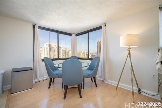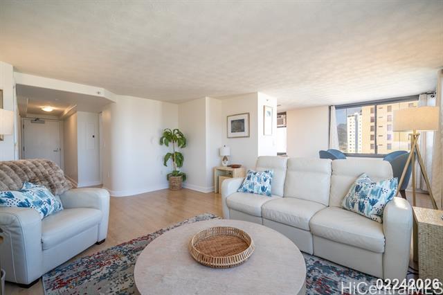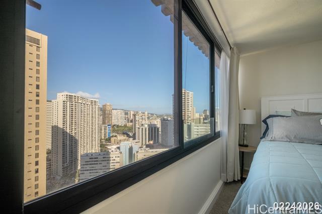 Enjoy comfortable island living in this immaculate and spacious 1,122 sq. ft., fully furnished 2-bedroom, 2-bathroom residence featuring one assigned covered parking stall in a secure building ideally located across from the Hilton Lagoon and just minutes from Ala Moana Shopping Center and Ala Moana Beach Park. Situated in highly desirable West Waikiki, this home offers both convenience and lifestyle. The unit is rented fully furnished, as shown in the photos, and features panoramic views along with stainless steel appliances, including a dishwasher, in-unit washer and dryer, and four window air-conditioning units: one in each bedroom, one in the living room, and one in the kitchen. The Windsor is a well-maintained, secure building offering 24-hour on-site security, controlled access, and secure parking. Building amenities include heated pool, exercise room, jacuzzi, BBQ, putting green, walking path, and the extremely popular Sky Terrace which enjoys 360-degree views and free WIFI. Water, sewer, trash, basic cable and Internet are included. One-year lease preferred, a six-month lease will be considered. No short-term rentals.
