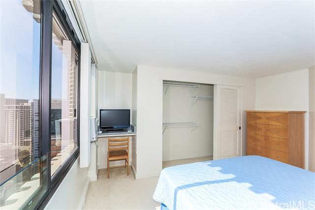 Price is $4350 for a 6 month lease. 2 Assigned parking stalls. (If you only have one car please call to discuss the extra parking space.) Fully furnished. Just bring your clothes. Storage area available to rent in the building as well. The apartment includes all appliances, dishwasher washer/dryer, double door refrigerator with ice-maker, oven built-in microwave, garbage disposal. Glorious ocean, sunset and sunrise view from this air-conditioned corner unit. Only 4 units per floor. Two master bedrooms on each side of the living room with built in Internet stations. One covered parking stall included in rent. Additional parking and storage is available from the building at a small fee. New window tinting just applied to all windows. 45th Floor roof allows for 360 degree parties with BBQ, Wet bars and tables. Tenant pays electric. (The electric has been under $100 for the previous tenants) The State of Hawaii General Excise Tax is included in the rent. Owner will consider 2 fixed cats or one small dog under 25bs. Amenities included: BBQ’s – (Sky Terrace, by Jacuzzi and Pool level) Full Gym and Weight Room FREE WiFi at Sky Terrace, Lobby and Pool Conference / Meeting Room Covered Lanai by Pool Pool Jacuzzi Sky Terrace on Roof Putting Green Jogging Path Recreation Area Recreation Room Book and Magazine Library Storage Lockers Security: 24hr Guard -Locked Lobby On-Site Resident Manager Secure Parking with Video Surveillance.