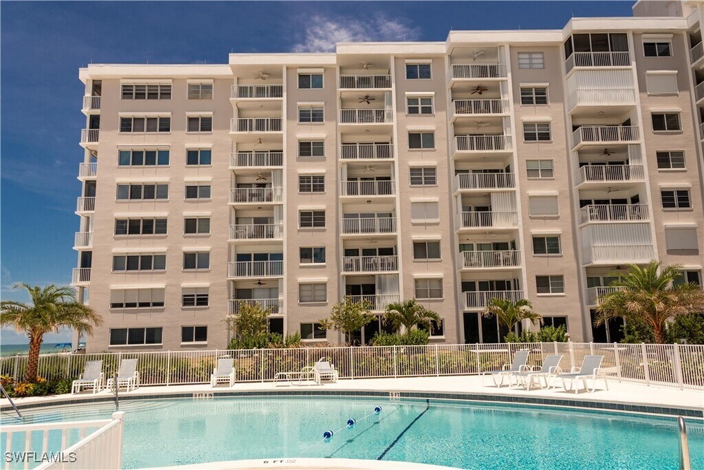 Beautiful coastal two bedroom,two bath condo right on the beach!!! Available for season 2026! Fully furnished and equipped,ready for your winter getaway. Enjoy the beautiful views from the lanai,spend your day at the beach or the heated pool! Lots of amenities - fitness center,community room-with pool table and kitchen,library + 24 Hour Attended Lobby. Steps from the beach enjoy the large heated pool,shuffleboard,grilling station. A short stroll to Venetian Village where one will enjoy world-class shopping & dining. Pets are not allowed per HOA.