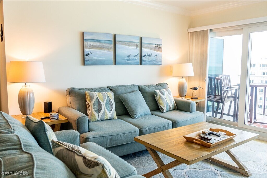 Beachfront! 2 bedroom-2bath,7th floor condo,overlooking The Gulf of Mexico,Courtyard,and Pool. Located directly on Moorings/ Park Shore Beach where you are just an elevator ride away to toes in the sand. Tastefully designed,tile throughout,and spectacular Sunset views from the living room,master bedroom and balcony. Laundry room and trash chute on each floor for your convenience. Available short or long term. Amenities include a large beachfront pool,barbecue area,shuffleboards and kayak/ paddleboard storage. The lobby,library,gym,2 guest suites,and community room with billiards and full kitchen,all overlook the white sandy beach and peaceful waves. Enjoy the beachfront lifestyle,just a short walk north is renowned shopping and dining at Venetian Village,where you can rent a boat with quick access to the Gulf.
