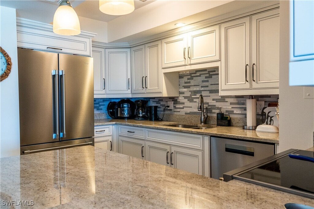 This freshly renovated eighth-floor residence offers gulf views from every room! Renovated from top to bottom,this unit features tile flooring throughout,recessed lighting,all new impact sliders,a new kitchen with stainless steel appliances,quartz countertops,a custom island with bar seating,extra storage and more. Wake up to views of the Gulf from both bedrooms that feature walk-in closets and en-suite baths. The spacious,northwestern-facing balcony extends off the living room and main bedroom,offering a spot to relax and enjoy the sunset. Residents can now enjoy the newly updated beachfront pool with a grilling area,shuffleboard,a social room with a kitchen,library,guest suites and a fitness room. Naples Continental is pet friendly,allowing owners to have two pets without any size restrictions. Leasing is allowed up to 12 times a year for a minimum of 30 days,making this an exceptional investment opportunity. In the Moorings neighborhood,you are just a quick visit to renowned dining and shopping offered at Venetian Village and a short drive from Mercato,Waterside Shoppes,5th Avenue South and 3rd Street South.