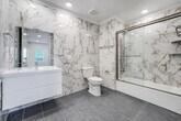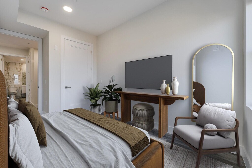 Explore Hudson Heights with a modern two bedroom, one bath apartment opportunity. This recent construction, pet-friendly building offers excellent amenities, like three common roof decks, elevator, secure entrance and eventual doorman, a package room, available parking and a coveted fitness center (coming soon), all with NO amenity fee and NO pet fees. Located in the Western Slope of The Heights, the ideal setting offers easy access to the main thoroughfare with shops and restaurants, Leonard Gordon Park, NYC transport and surrounding areas. This unique residence hosts a spacious layout with incredible views. The modern interior is finished with clean design and upgraded elements like Katella ash floors and a walk-in closet. Kitchens offer white quartz counters, tile backsplash, and Samsung stainless steel appliances. Stackable in-unit washer and dryers add to lifestyle and convenience. The location is a few blocks from the PATH and Hoboken, offering easy city access. Parking is available for an additional fee.