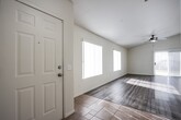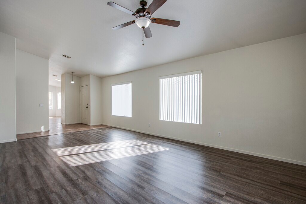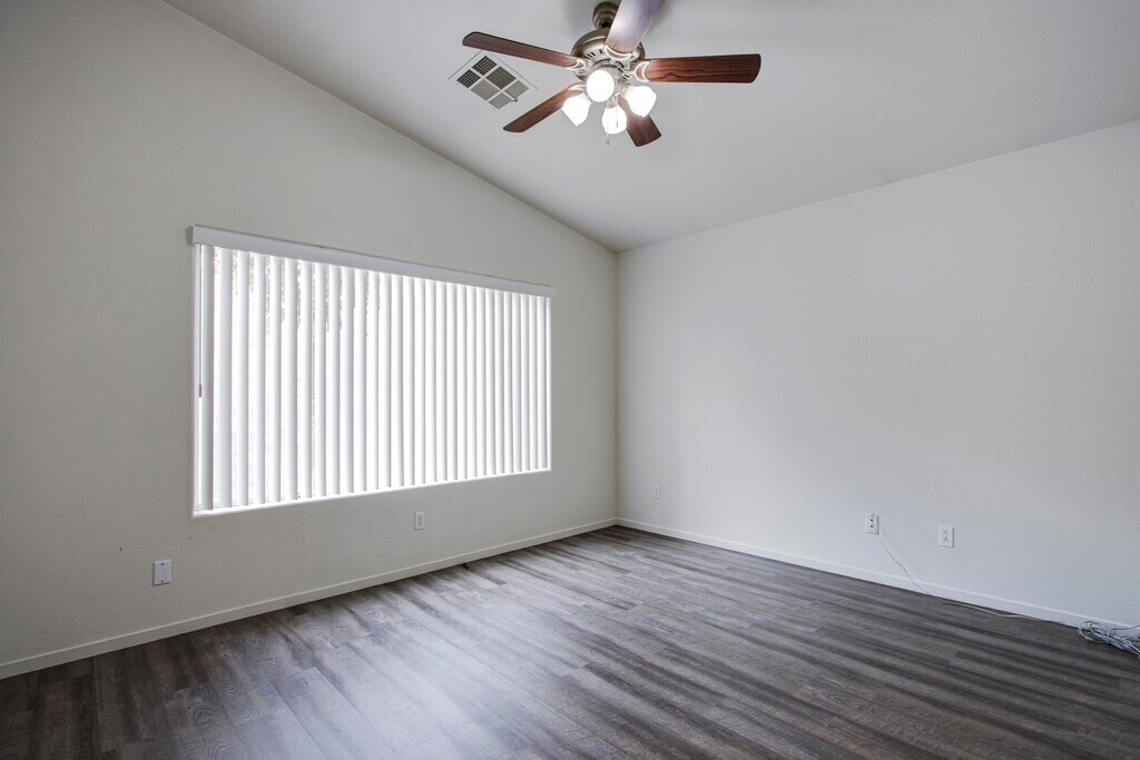 Single-story home with 3 bedrooms, 2 full baths, and a 2-car garage NO carpet— only tile and laminate flooring throughout. The kitchen shines with granite countertops and a dining area bathed in natural light from large windows. Once we secure a new tenant, this home will be upgraded with brand NEW kitchen appliances and a NEW washer & dryer—LUCKY YOU! The spacious living room includes a ceiling fan for added comfort and high ceilings! The primary bedroom is separated from the other bedrooms, features a ceiling fan, large walk in closet and primary bathroom has a separate tub and shower. Additional bedrooms are generously sized with ample closet space. The laundry room is a great size—perfect for all your washing needs! The backyard is a serene escape with grass, mature trees, and beautiful landscaping. Community park and trail for jogging. Enjoy easy access to freeways, shopping, dining, and more! Pet-friendly home with professional landscape maintenance included in the rent!