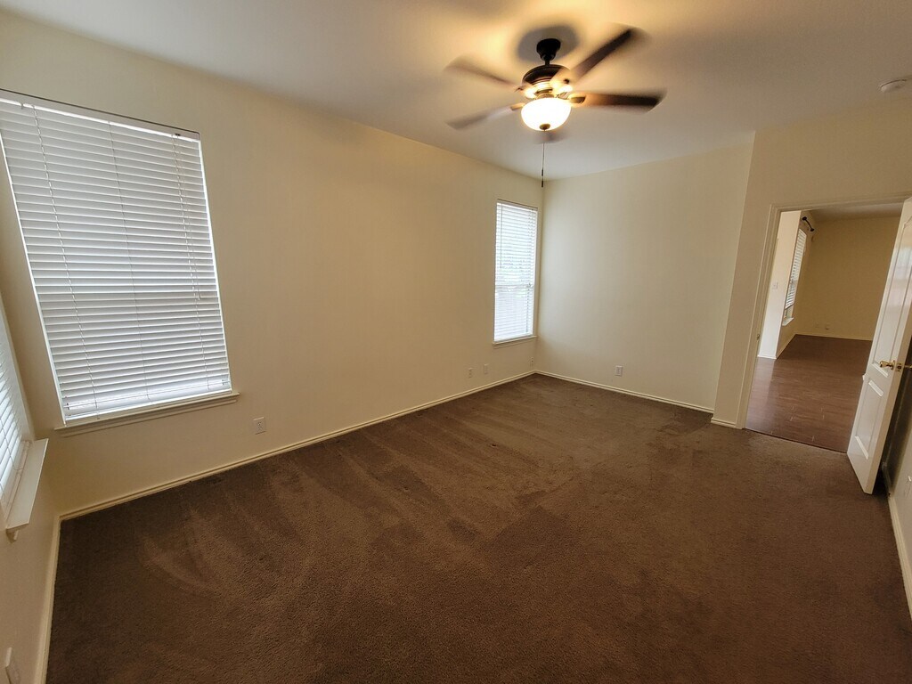 Located in a quiet, gated neighborhood and available now! This lovely home features an open floor plan, with a spacious living area that flows nicely to the kitchen and dining area. The kitchen includes stainless steel appliances, granite countertops, and plenty of counter and cabinet space! The primary bedroom is located off the dining area in the rear of the home which provides privacy from the guest rooms, and has a walk-in closet, with a tub/shower combo and double vanities in the primary bath. The guest rooms are of ample size and there is a bonus room that can be used as a fourth bedroom, office, or craft room! Mature trees in the backyard provide shade and make the covered patio area more enjoyable. This home is conveniently located just a short drive from I35 and provides easy access to nearby businesses, schools, and plenty of dining and entertainment options. Apply now! Renters insurance required.