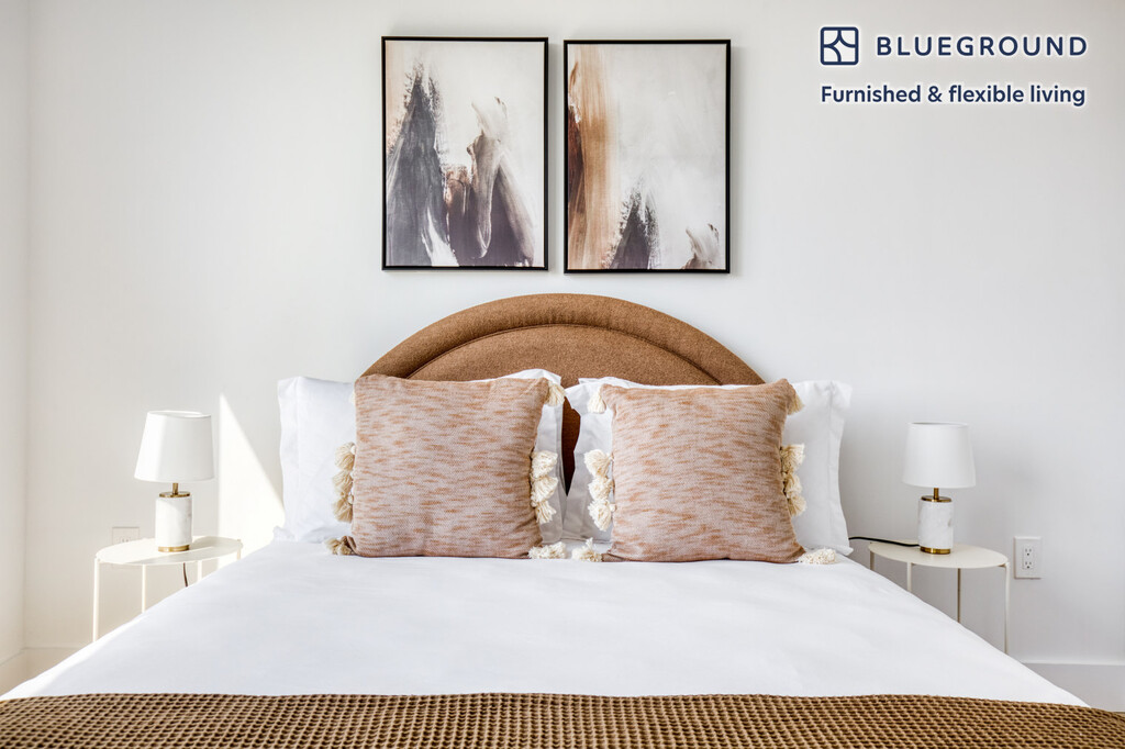 Show up and start living from day one in Jersey City with this beautiful two bedroom Blueground apartment. You’ll love coming home to this thoughtfully furnished, beautifully designed, and fully equipped Journal Square home with stunning views over the city. (ID #NYC962) The advertised rate of $4,610/month is the lowest available price, based on a 11 month(s) and 19 day(s) stay with a move-in date of March 1, 2026. Rates vary depending on the duration of stay, season, and other parameters. For exact pricing and additional pricing components, please visit our website and enter your desired move-in and move-out dates. The rate is applicable when billed upfront; it can be higher if billed in multiple payments. Brokers are welcome to reach out. Were you looking for an unfurnished lease? Try Blueground instead and upgrade from unfurnished to furnished living: - Furnished at rates comparable to unfurnished - No setup or furniture costs - save thousands - Move-in ready - save time, just bring your suitcase Designed with you in mind As with any Blueground apartment, you’ll find a thoughtfully designed space complete with beautiful furniture and a fully equipped kitchen in this two bedroom property. And, thanks to our superior quality mattresses, luxury linens, and towels, you can relax knowing you’ll always feel comfortably at home. When you’re ready for some fun, you can take in the Jersey City vibes or bring the entertainment to you with the premium wireless speaker or smart TV. This apartment also offers in-apartment laundry. Sleeping arrangements Queen Bed, 63in/160cm Queen Bed, 63in/160cm Amenities Building amenities unique to this two bedroom apartment include an on-site: - Dryer - Elevator - Washing machine Arrival and ongoing support The entire apartment is yours to enjoy! Throughout your stay, you’ll have access to our Client Experience team through the Blueground App. You can schedule additional cleanings, submit maintenance requests, and view our neighborhood recommendations with just a few taps. We’ll share all details upon confirmation of your stay. Other things to note Building amenities may have an extra cost. This Blueground apartment has flexible lease options, allowing you to book it for one month, a year, or more. Brokes CYOF. We take great pride in ensuring every photo displayed is shot in our own units with our actual furnishings. That said, we regularly refresh our decor and furniture arrangement, which may differ from what’s pictured. [SI]