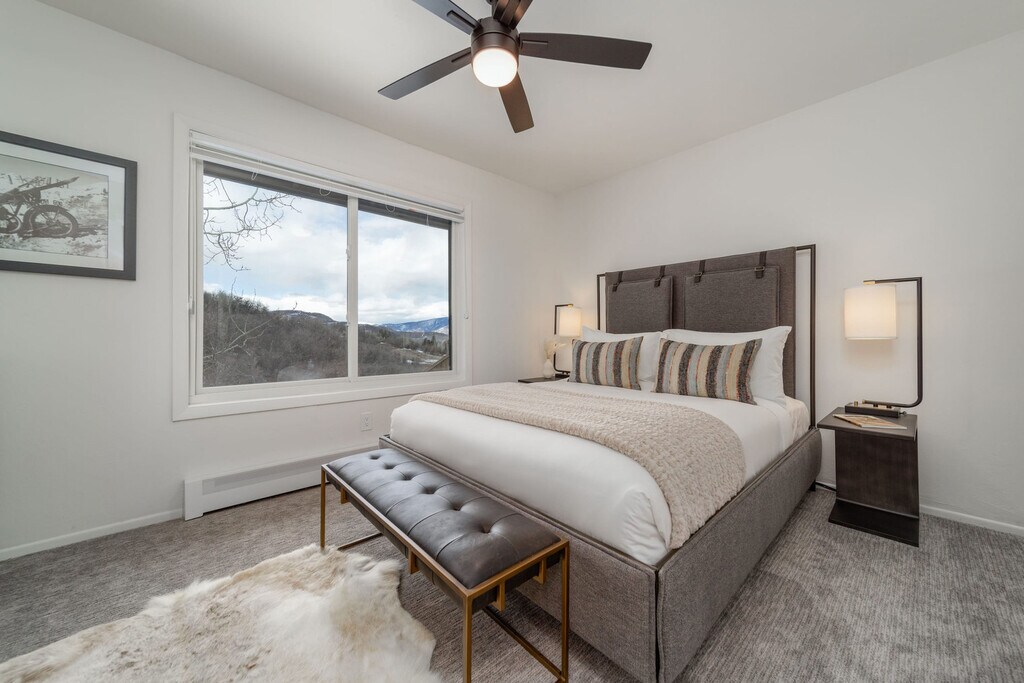 Experience luxury living in this newly renovated 3-bedroom condominium, conveniently situated only a few blocks from the gondola. Enjoy stunning views from every window, including Independence Pass and the majestic slopes of Snowmass Mountain. World-class skiing is just a brief stroll to the Assay Hill lift, or hop on the shuttle conveniently stopping at the Seasons 4 complex every 15 minutes. This modern and comfortable unit offers everything you need for a perfect stay. The kitchen is fully equipped with modern appliances and has direct access to the patio grill, making it easy to prepare meals. A bar area with a wine fridge keeps beverages chilled. The living area includes a queen sleeper sofa, while the convertible king bed can be set up as two twins to accommodate different sleeping needs. After a day on the slopes or trails, relax in the heated pool, hot tub, or dry sauna at Seasons Four. Smart TVs in every bedroom, multiple charging stations, ample storage with closets and drawers, and ski holders both indoors and outdoors provide added convenience. Bathroom heaters offer extra warmth after outdoor activities. Stay connected with high-speed Wi-Fi, ideal for streaming, remote work, or staying in touch. Xfinity cable Smart TVs allow you to watch your favorite shows, movies, and sports events. The property includes two private parking spots for your vehicles. Storage for skis and snowboards is available inside the front door of the unit in the custom ski rack. Located at Four Seasons Condominiums, this home offers a short, free shuttle ride to the slopes, Base Village, Snowmass Mall, Clark's Market, or a connecting shuttle to the other mountains. Enjoy year-round access to an oversized hot tub and sauna, and a heated pool open from Memorial Day to Labor Day. The private balcony with a gas grill offers gorgeous mountain views. Two private parking spots are available for your vehicles, and there is storage for skis and snowboards inside the front door of the unit in the custom ski rack. The HOA has a guest limit of 6 people. Children 5 years and younger do not count towards this total. The shuttle to the mountain comes every 15 minutes and stops directly in front of the building. The shuttle will bring you to the Gondola and Base Village or Snowmass Mall. In both directions, the shuttle stops at Snowmass Shopping Center, right next door, where Clark's Market is the only grocery store in Snowmass. Stay connected with high-speed Wi-Fi, ideal for streaming, remote work, or staying in touch. Multiple charging stations are available for added convenience.