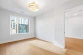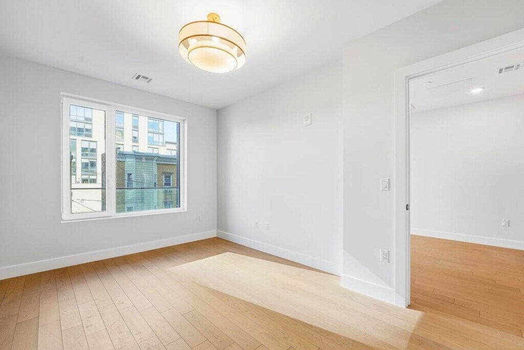 Welcome to The Heritage Place; Boutique Residences in a luxury new construction, elevator-building within one of the most affluent sections of Journal Sqaure. Residence 303 offers a spacious 1-Bedroom, 1-Full Bath with a private balcony and expansive windows for abundant natural light. The open kitchen, featuring high-end Samsung appliances and natural quartz countertops paired with classic brass-tone accents, overlooks a sprawling living room that showcases opulent wide-plank flooring, amplified by the plentiful sunlight. The luxuriant style continues through the bedroom suite, with custom wood paneling and a massive walk-in closet outfitted with brand new built-in cabinetry. The bathroom provides an equally refined style with matte black fixtures, porcelain tile, and reeded glass shower panels. Additional upscale features include solid core doors, smart entry systems, Central AC, In-Unit Washer & Dryer, video intercom security system, bike storage, and a dedicated package room. The Heritage Place designer lobby is your passageway to the vibrant neighborhood of McGinley Square; close to the JSQ PATH station, grocery stores, and some of the finest shops, restaurants, and culture offered in Jersey City.