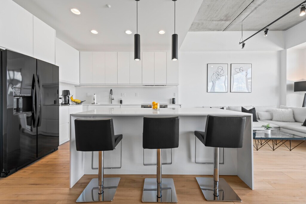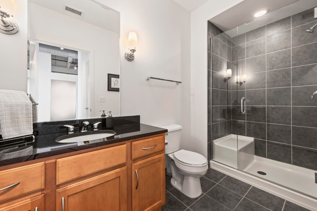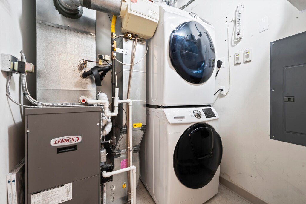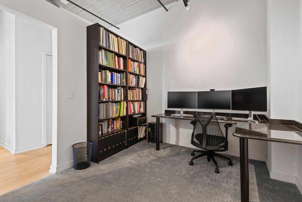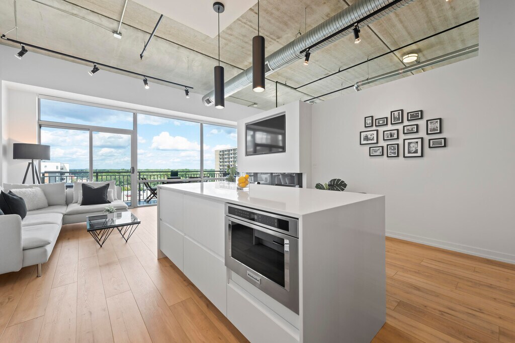 FULLY Furnished Executive Style 7th floor Loft. This has all the bells and whistles. Fully stocked kitchen. Just unpack your bags,everything else is there for you to use & enjoy. Gorgeous Kitchen,w/quartz counter tops & upgraded appliances. Owners suite has a custom closet that will absolutely blow you away. Wood floors throughout except in the 2 bedrooms. In-Suite FULLSIZE washer & dryer (stacked). Office/second bedroom has a amazing granite countertop desk. 1-Car covered,heated,and FOB secure parking in the building,more parking available to the East. Building amenities include a 7-days a week concierge service near the entry. Updated 5th-floor fitness center,recently updated main lobby with 2 elevators to all floors & a heated bike storage room on the entry level. Convenient trash shoots on each floor. Mailroom & parcel pickup on the entry floor. No storage locker available for this unit. Loft faced North with views east as well. Just a few steps away from all the fun in RO