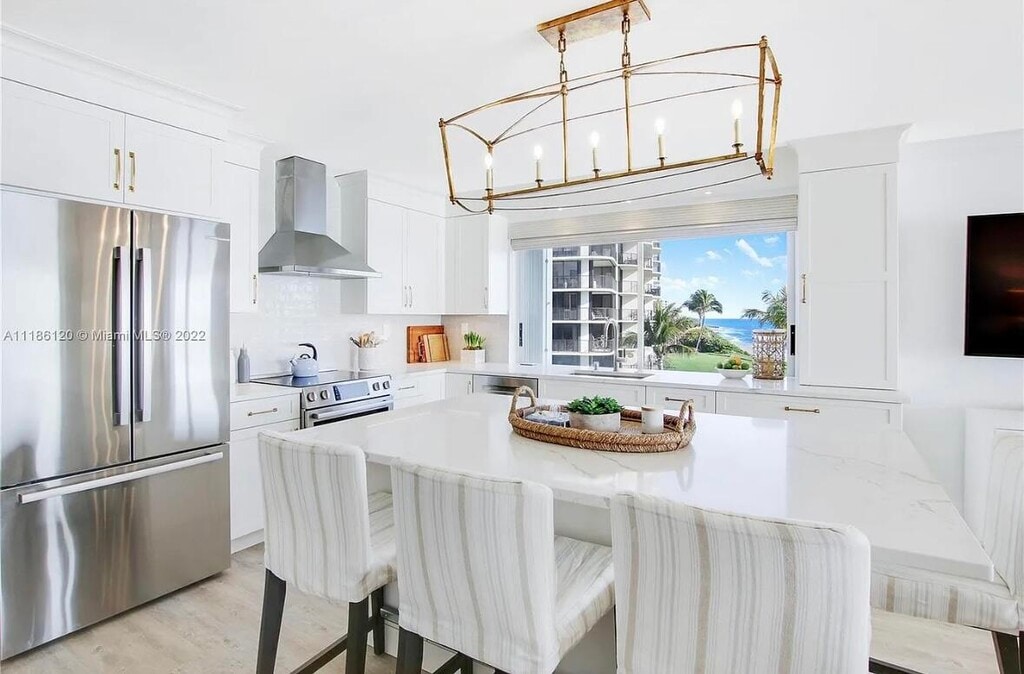 Welcome to your ocean front paradise at 350 Beach Rd. #401, an exquisite corner unit nestled in a boutique-style building with only 20 exclusive residences. This stunning condominium offers the perfect blend of coastal elegance and modern comfort, making it an ideal seasonal retreat for those seeking the ultimate Florida lifestyle. As you step inside this beautifully appointed unit, you are immediately greeted by panoramic, unobstructed ocean views that are nothing short of breathtaking. The expansive windows flood the living space with natural light, creating a warm and inviting atmosphere that is a true calming experience. Whether you're enjoying a quiet morning coffee or hosting friends for sunset cocktails, the sights and sounds of the ocean will be your constant companion.