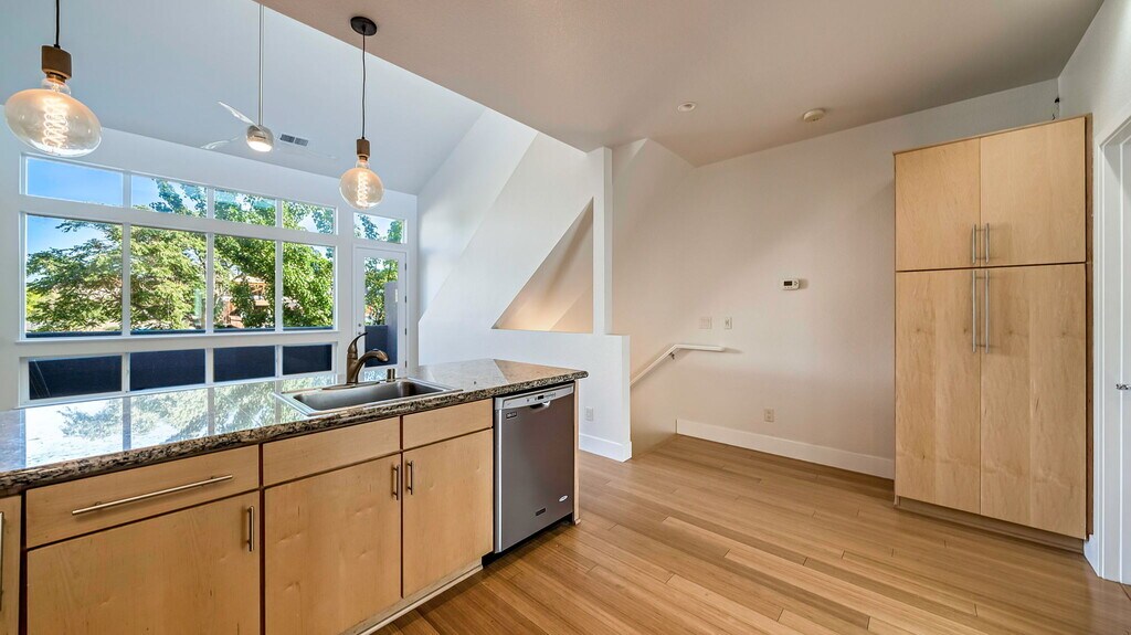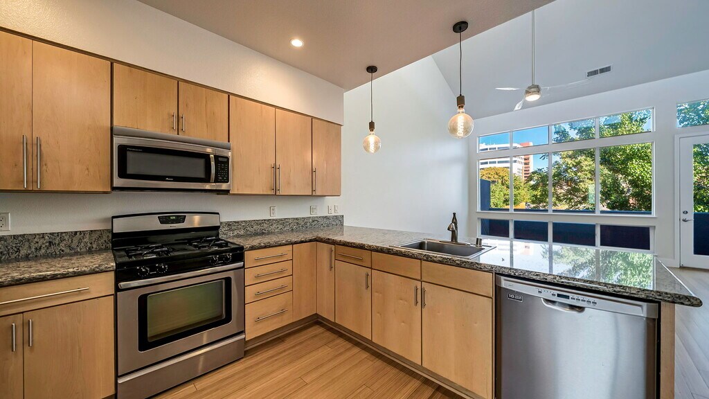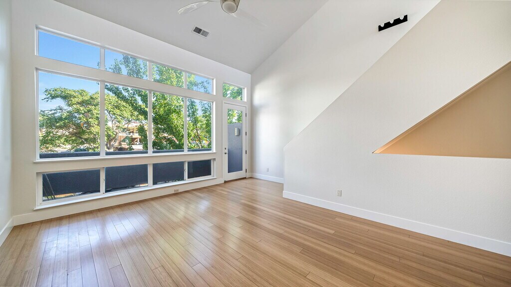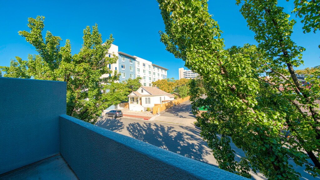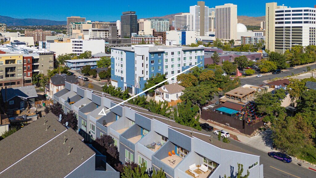 Modern three-level townhouse adjacent to Downtown Reno! This 2-bed, 2-bath home features a versatile third-story loft, a spacious rooftop deck with sweeping views, and an additional front deck perfect for enjoying Aces Ballpark fireworks and city lights. Highlights include tall ceilings, oversized windows for abundant natural light, direct-access garage plus driveway parking, and a fenced common area with pet stations and sitting spaces. Freshly painted and carpeted. Walk to some of Reno's best dining, nightlife, and entertainment right outside your door.