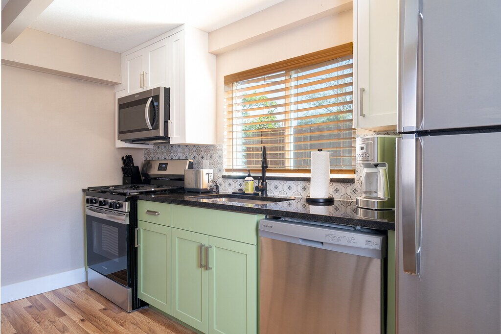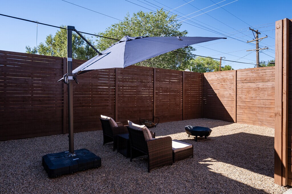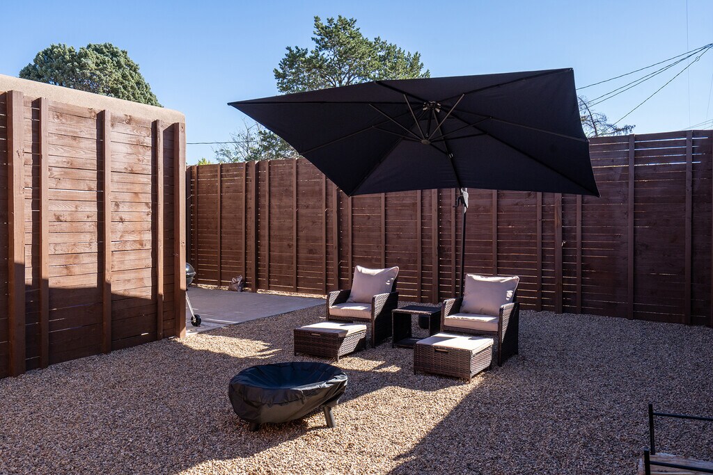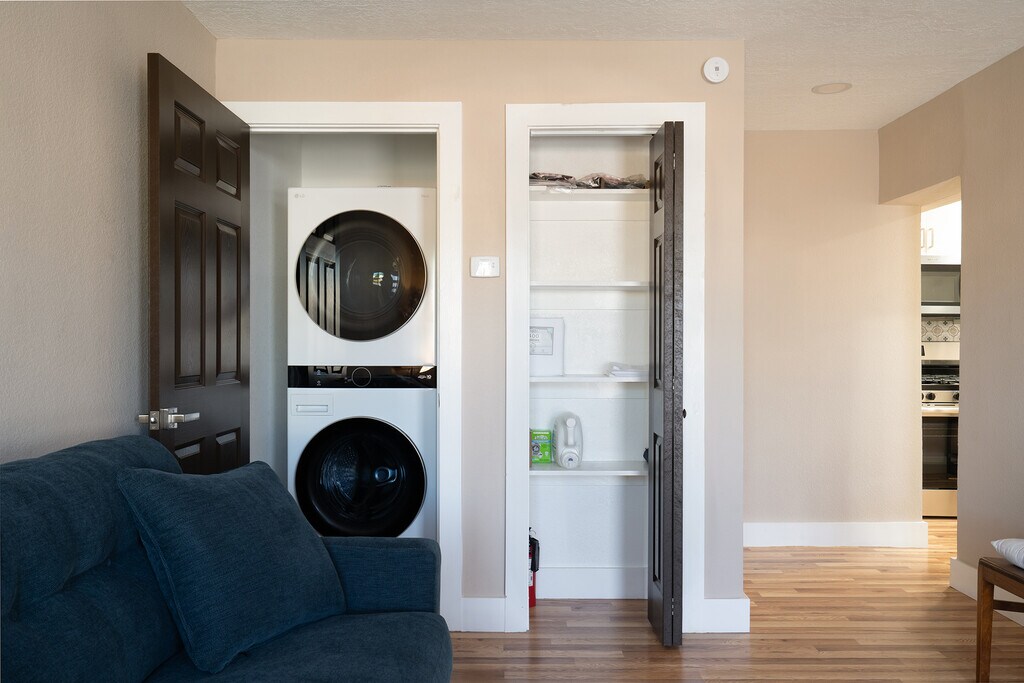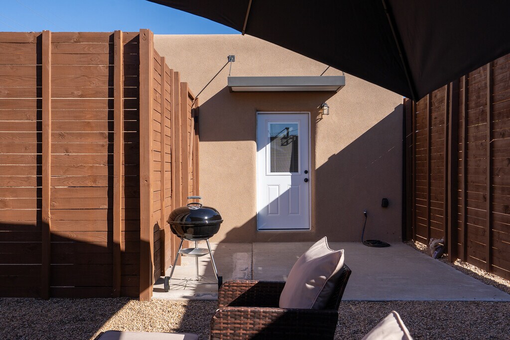 Completely Renovated, Fully Furnished Casita Take a step up from apartment living! Everything is new inside this terrific casita. All bills paid, including electrical, water, gas, internet and YouTubeTV. Quiet and central. The all-brand-new appliances, furniture, dishes, flatware, cooking pans and utensils have never been used. Central heat and air-conditioning; tankless water heater; full-size stacked LG washer/dryer; king-sized bed with new Beautyrest PressureSmart Lux mattress. Private entrance; large private backyard with Weber grill; seating for two; a retractable cantilever umbrella; 8-foot privacy fence; and back-patio gate latch inside fence for security. Off-street parking with room for 2 cars in the private driveway. Close to Everything Adjacent to Nob Hill on a quiet street with friendly neighbors. Super close to all Nob Hill restaurants and shops. Quiet neighborhood streets are great for outdoor activities. Small neighborhood coffee shop just one block away. No smoking. Minimum 3-month stay. One small well-behaved pet will be considered with a pet fee. $50 application fee per person covers TransUnion SmartMove background, credit and rental check for each adult occupant.