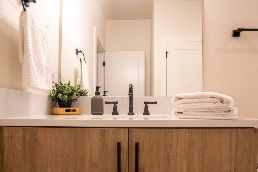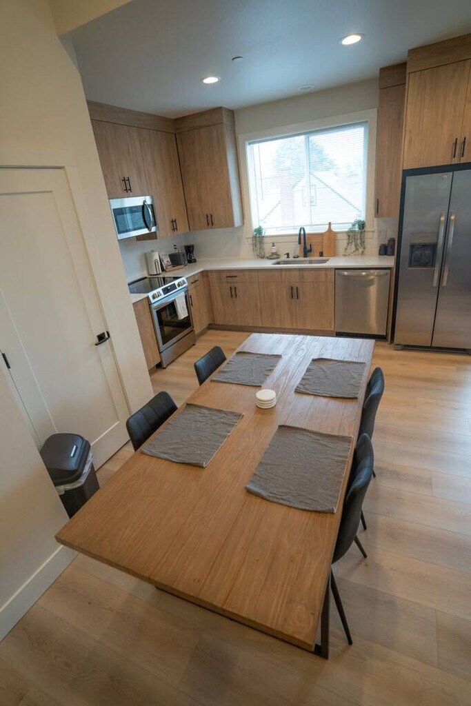 - Additional Property Details- Feel at home in this elegant 2-bedroom, 2-bath residence nestled in the heart of Vancouver, mere minutes from the waterfront. This exceptional home features a thoughtfully crafted living room and a guest-centric, fully stocked kitchen with vaulted ceilings. The living room welcomes you with a comfy couch, a unique accent chair, and a 65” TV with Netflix. The open-concept layout flows into a dining area that seats six. On-site parking is available, with designated parking spots located on the North side of the building. Additional sleeping arrangements can be provided upon request. Located just minutes from the best of Vancouver, you’ll find countless places to explore, including local coffee shops, unique restaurants, and scenic parks. A visit to the Vancouver Waterfront is highly recommended. Highway 500 is 1 mile away, I-5 is 2 miles away, Downtown Vancouver is 2 miles away, Downtown Portland is 11 miles away, Portland International Airport is 12 miles away, Multnomah Falls is 35 miles away, Mt. Hood is 65 miles away and the Oregon Coast (Seaside) is 88 miles away. The neighborhood is quiet and peaceful, a safe place for families and kids, with a hospital across the street and grocery stores down the street. Guests who bring pets without notifying the host will be charged $100 per pet per night for the duration of the stay. Please take shoes off inside the house. Each of the two spacious bedrooms is curated for comfort and style, including all the essentials. Both rooms feature plush queen beds, with extra bedding and pillows available. [SI]