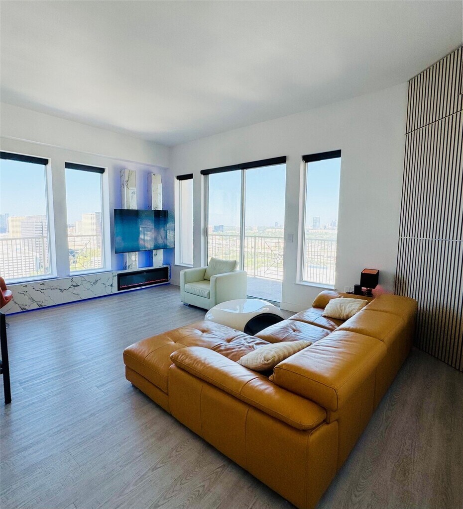 Fully Furnished High-Rise Condo in the Galleria with internet included in monthly rent. Experience upscale living in this beautifully upgraded 21st-floor residence,located in a prestigious Galleria high-rise. This 2-bedroom,2-bath condo offers 1,357 sq. ft. of sophisticated space,featuring rich Brazilian Koa hardwood flooring,sleek modern appliances,LED lighting,and custom cabinetry throughout. Step onto the expansive terrace to take in breathtaking sunset views,the perfect backdrop for relaxing or entertaining. Residents enjoy access to premium building amenities,including 24-hour concierge service,valet parking,a resort-style pool,state-of-the-art fitness center,and a library. Call today for more details. MLS# 38128552