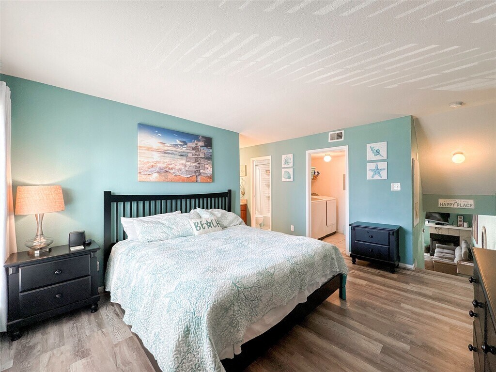 Welcome to this delightful 1-bedroom,1-bath FULLY FURNISHED condo in the highly sought-after community! This unit offers a cozy yet spacious layout for full-time living,a weekend getaway,or an investment property. Step inside to a warm and inviting living area,with a wood-burning fireplace,ideal for relaxing evenings. French doors to your private patio,where you can enjoy your morning coffee or unwind after a day at the beach. Upstairs,the spacious bedroom offers plenty of natural light,with a large walk-in closet for storage. The full bathroom and a utility room with washer/dryer complete the 2nd floor. Tankless hot water heater! Residents of this charming community enjoy resort-style amenities,including a sparkling pool,clubhouse,and fitness center. Located just minutes from Galveston’s sandy beaches,Moody Gardens,Schlitterbahn,and fantastic dining and shopping,this condo is a must-see! Don’t miss this incredible opportunity—schedule your showing today! MLS# 35341358