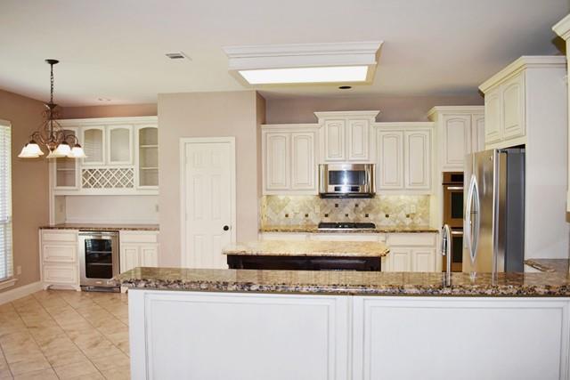 Beautiful 4-Bedroom Home with Elegant Finishes and a Spacious Layout! This beautiful 4-bedroom, 2.5-bath home featuring classic brick façades and manicured landscaping, welcomes you with great curb appeal and a warm, inviting entry. Inside, enjoy an open and versatile layout with two spacious living areas and two dining spaces, including a formal dining room ideal for special occasions. The gourmet kitchen is a showstopper with custom cabinetry, granite countertops, a large center island, stainless appliances, and a beverage center — perfect for entertaining or everyday convenience. Decorative lighting and upgraded fixtures accent the home throughout, adding a touch of modern elegance. The split-bedroom layout ensures privacy for the primary suite with a luxurious en-suite bath, while secondary bedrooms are generously sized. Zoned to highly acclaimed schools with exemplary “A†state ratings, this home also offers a serene setting backing to a beautiful green space — the perfect blend of location and lifestyle. Filled with natural light and upgraded finishes, this home is perfect for relaxing, entertaining, and everyday living, conveniently located near local amenities including the Flower Mound Riverwalk and Peacock Park. Come see this gem!