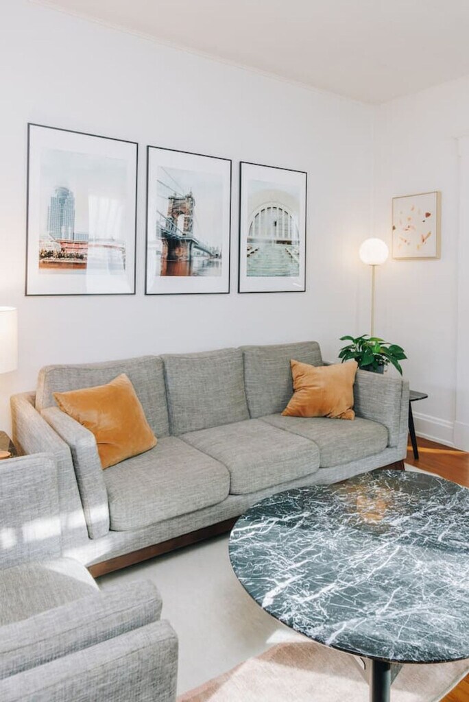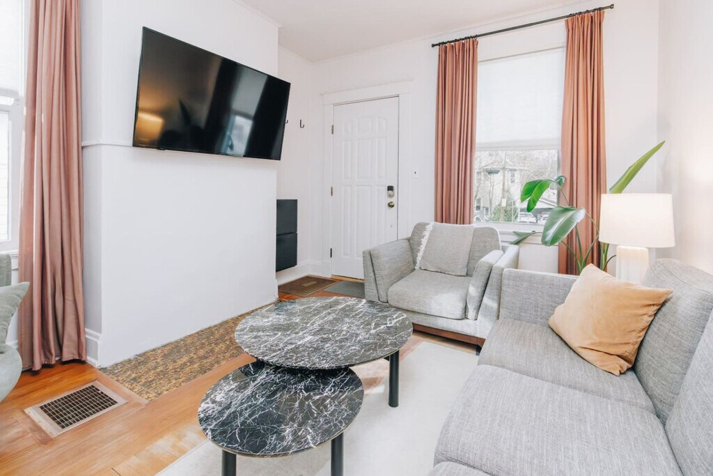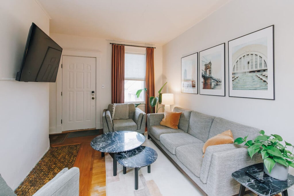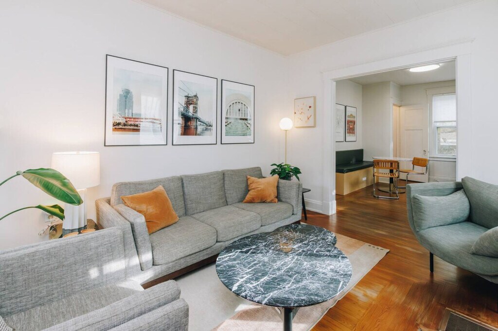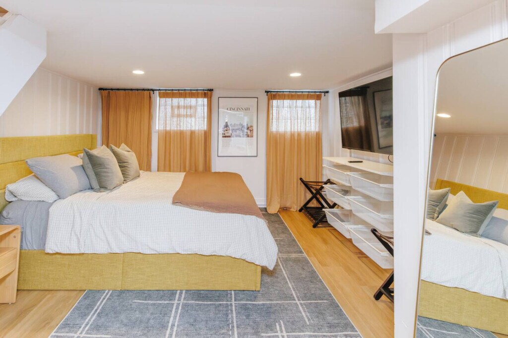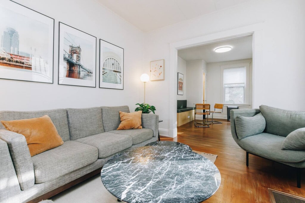 Nestled in the sought-after Hyde Park neighborhood, feel at home in this 3-bedroom apartment that blends classic charm with modern comfort. Ideal for groups of 2-4 or a small family, this apartment is a gem that allows you to enjoy what the area has to offer. There are some steep stairs leading to the basement bedroom, so please be careful when using them to stay safe. The fully stocked kitchen features a full-size gas stove, microwave, refrigerator, Nespresso coffee maker (pods available), Brita water filter, toaster, utensils, dishes, pots, pans, baking sheets, paper towels and hand towels. The open concept from the kitchen to the living room is perfect for preparing a family dinner that can be enjoyed in the dining area or on the front porch. Guests are welcome to park in the driveway, and there's also free street parking available for your convenience. A baby travel crib is provided. Just 10 minutes from downtown, this apartment is also within walking distance of Cincinnati's popular coffee shop, Coffee Emporium, and diverse dining options, offering the best of both worlds. Enjoy unbeatable convenience whether you're in town for a festival, catching a game with the Cincinnati Reds, Cincinnati Bengals, or FC Cincinnati, cheering on the Cincinnati Bearcats, or exploring amazing performing arts venues, museums, healthcare facilities, and the corporate scene. The apartment is within walking distance to various eateries and bars, coffee shops, tennis courts, and a park, including Bangkok Bistro, Cafe Mediterranean, China Gourmet, Coffee Emporium, Dutch’s Beer Garden & Restaurant, Forno Osteria Italian Restaurant & Bar, Hap’s Irish Pub, Papa John’s, Saint Francis Pizza (Pizzeria), and United Dairy Farmers (Convenience Store & Gas). Within a 2-5 minute drive, you'll find Kroger Grocery Store & Walgreens, Hyde Park Shopping Plaza (Shops & Eateries), Hyde Park Square with Boutique Shops & Eateries/Bars, Cincinnati Observatory, Ault Park, and Wasson Way Trail Entrance (Biking/Walking/Running). A 10-15 minute drive will take you to Downtown Cincinnati, Over the Rhine District, Great American Ballpark, Paul Brown Stadium, Findlay Market, Cincinnati Zoo, University Of Cincinnati, Xavier University, and Hard Rock Casino. There is a $200 cleaning fee for any smoke smell upon checkout. No parties or events and no unregistered guests are allowed. Please respect the neighbors and observe the noise curfew at 10 PM. Please respect check-in and check-out times. Please take care of the furnishings, as you have to pay for damages. Please don’t rearrange the furniture. Please take the trash out before you leave. No illegal substances are allowed on the premises. [SI]