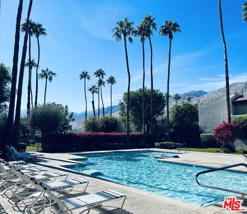 PRIME PALM SPRINGS! Amazing 1 bedroom resort like condo in the heart of Palm Springs! Gorgeous views from your bedroom! This beautiful one-bedroom, one-bath offers the perfect blend of comfort and style. Step inside to discover a beautifully designed space featuring a seamless fusion of luxury vinyl plank flooring and carpeting, providing both elegance and warmth. Features include updated bathroom, high end tiles, and in-unit washer and dryer, along with a huge private gated patio area and additional patio off primary bedroom. . Enjoy reserved , covered and gated parking nearby. Located on the ground level within a serene gated community, you'll have the luxury of two pools ,spas and tennis courts , inviting you to unwind and soak up the California sun. Enjoy views of the pool and mountains from your bedroom. Centrally located very close to downtown Palm Springs restaurants, Casino, supermarkets and shopping. This is a non-smoking complex. Annual lease. MLS# 25610907